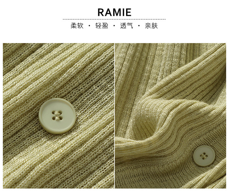 竹リネンニットカーディガン女性の薄いラウンドネック模造リネンアイスシルクジャケットルーズアウター日焼け止め服空調シャツ