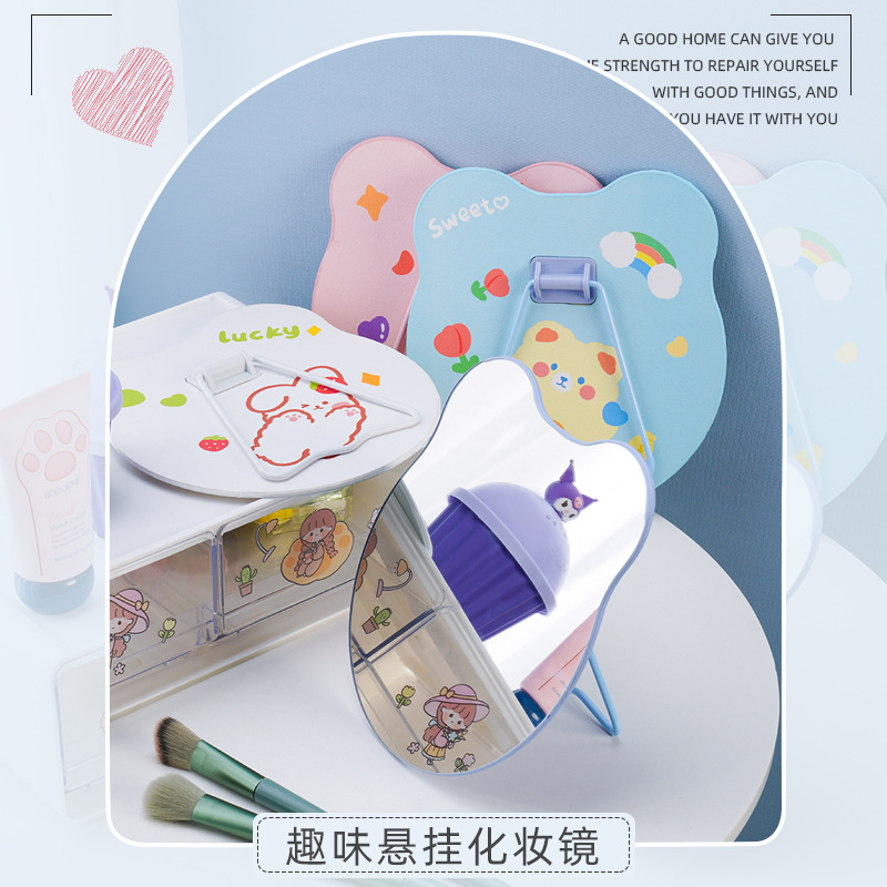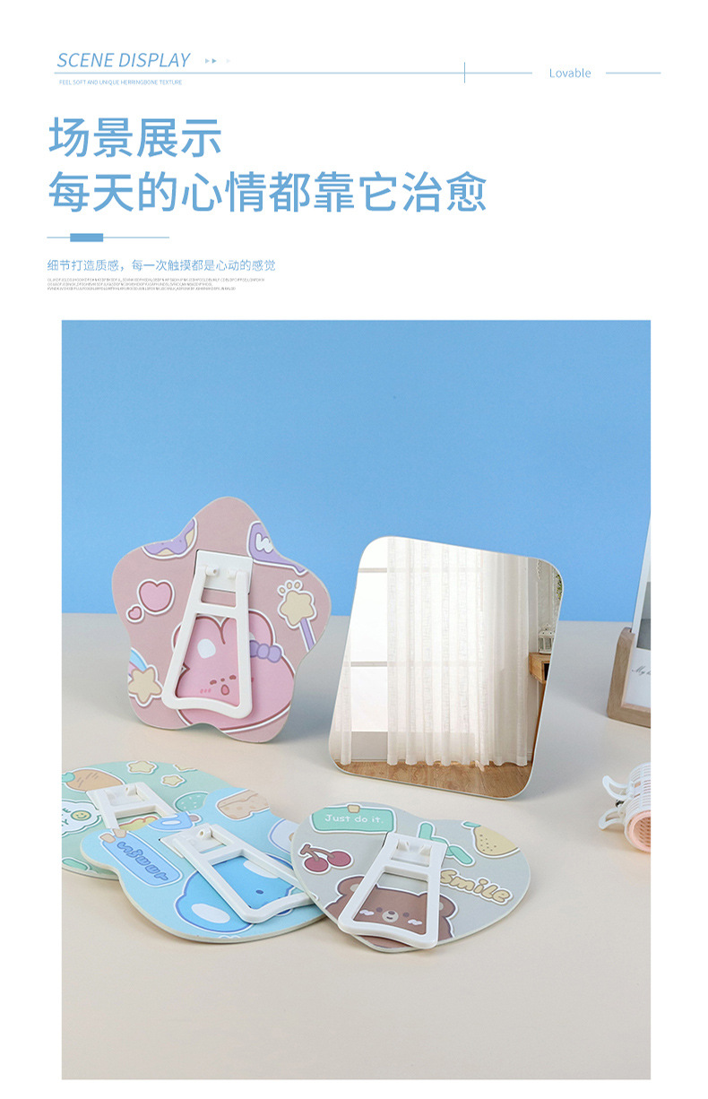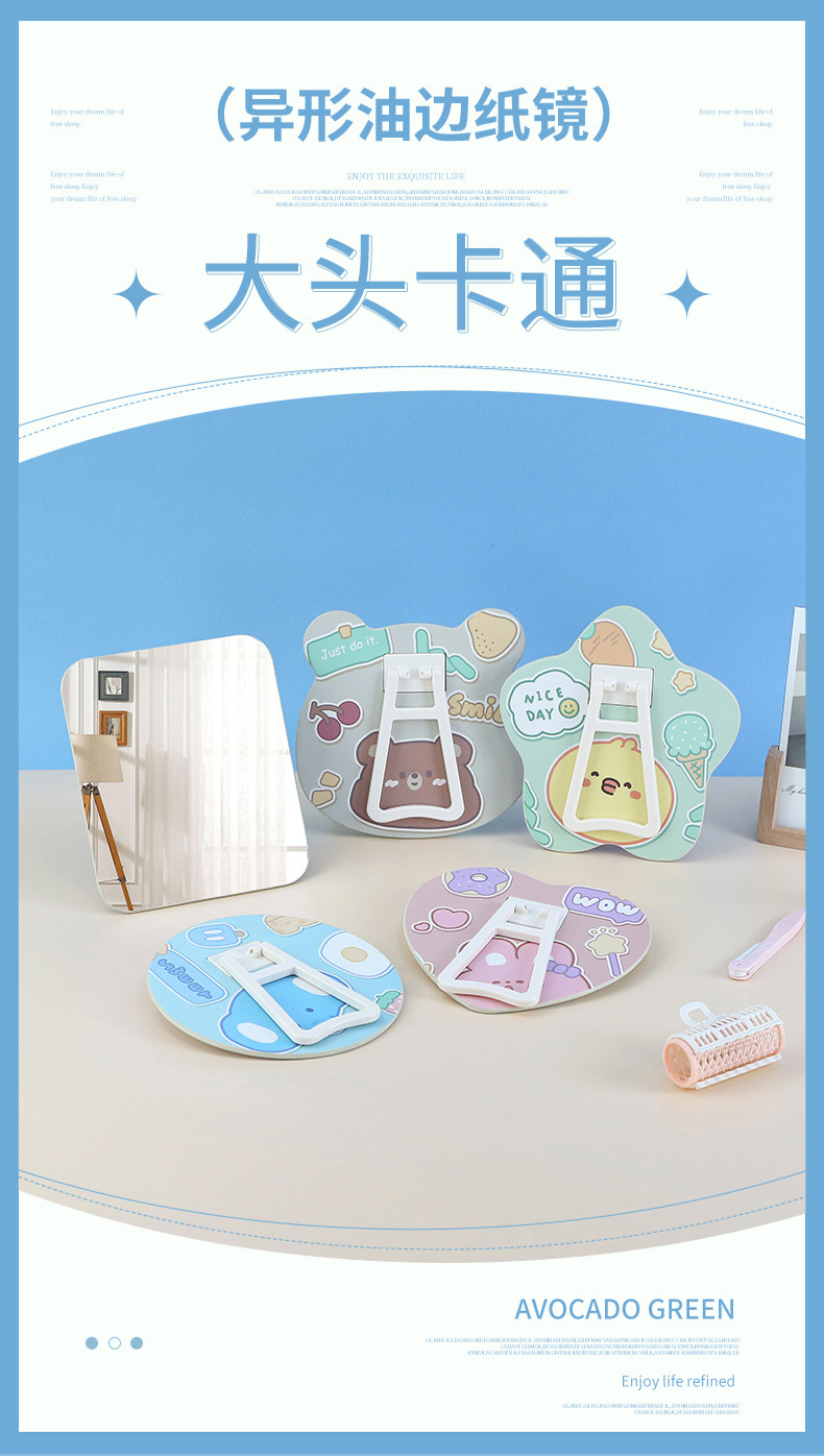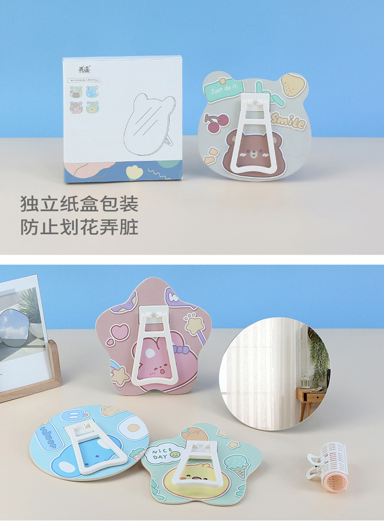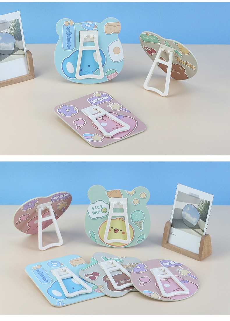 原创熊头折叠镜 两用油边可立可挂台镜可爱美食家族梳妆单面镜子