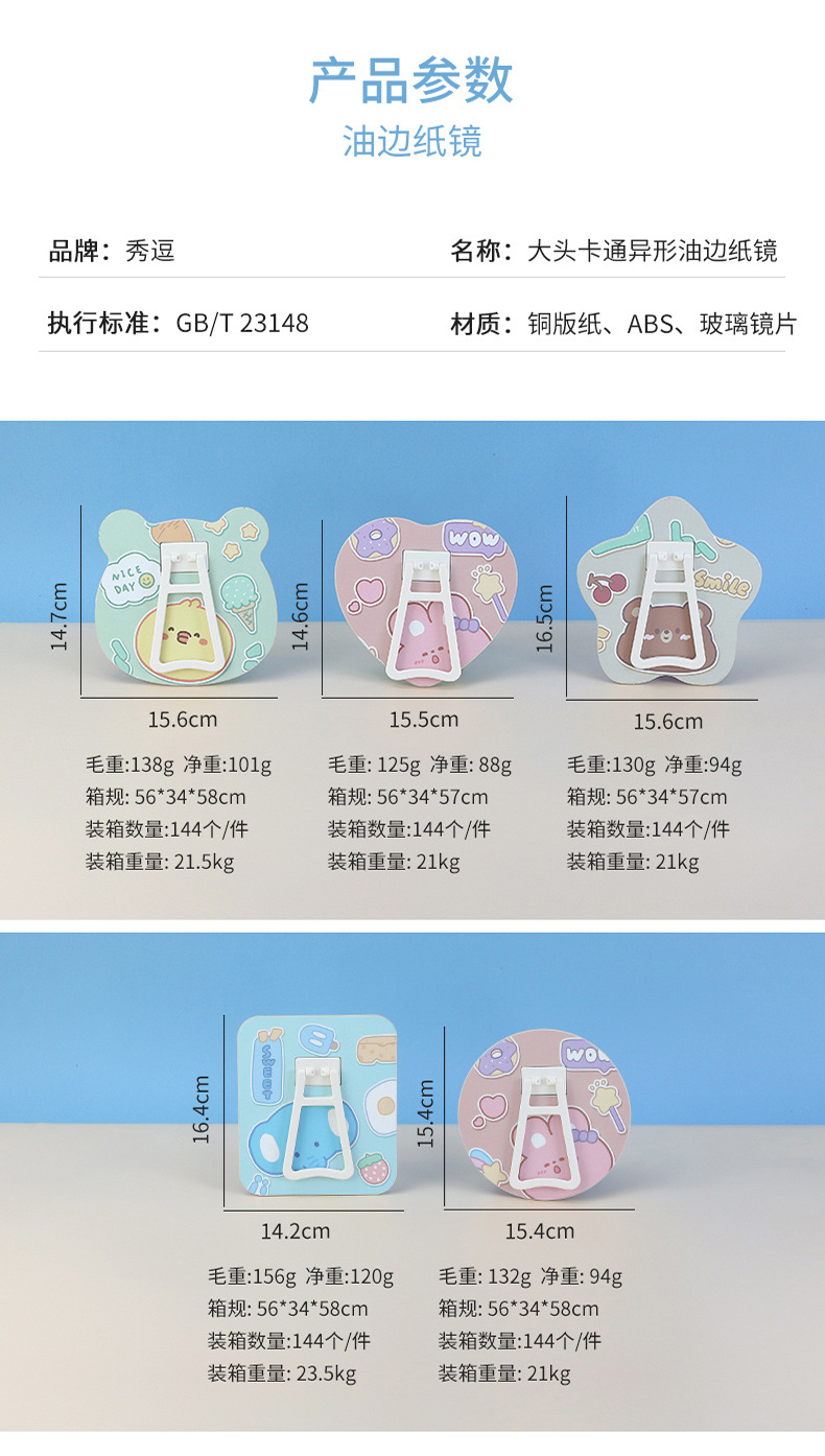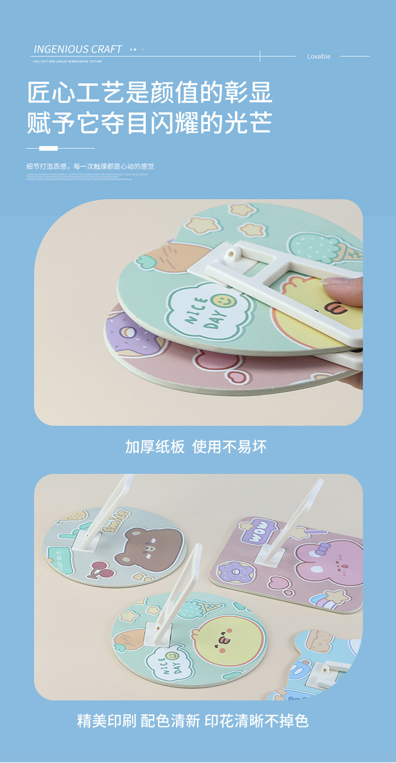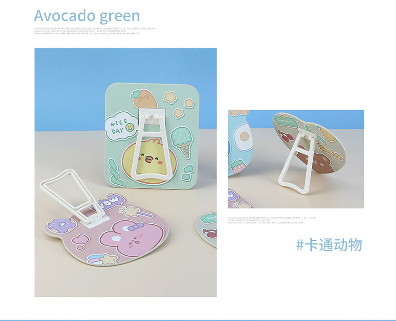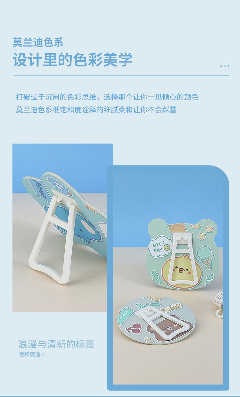 原创熊头折叠镜 两用油边可立可挂台镜可爱美食家族梳妆单面镜子