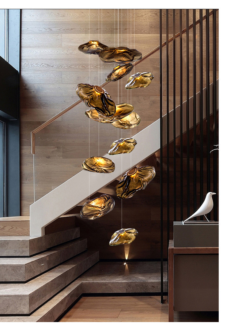 おしゃれでシンプルなロフト階段別荘、複層アパートメント用溶岩シャンデリア、デザイナー溶岩レストラン階段シャンデリア