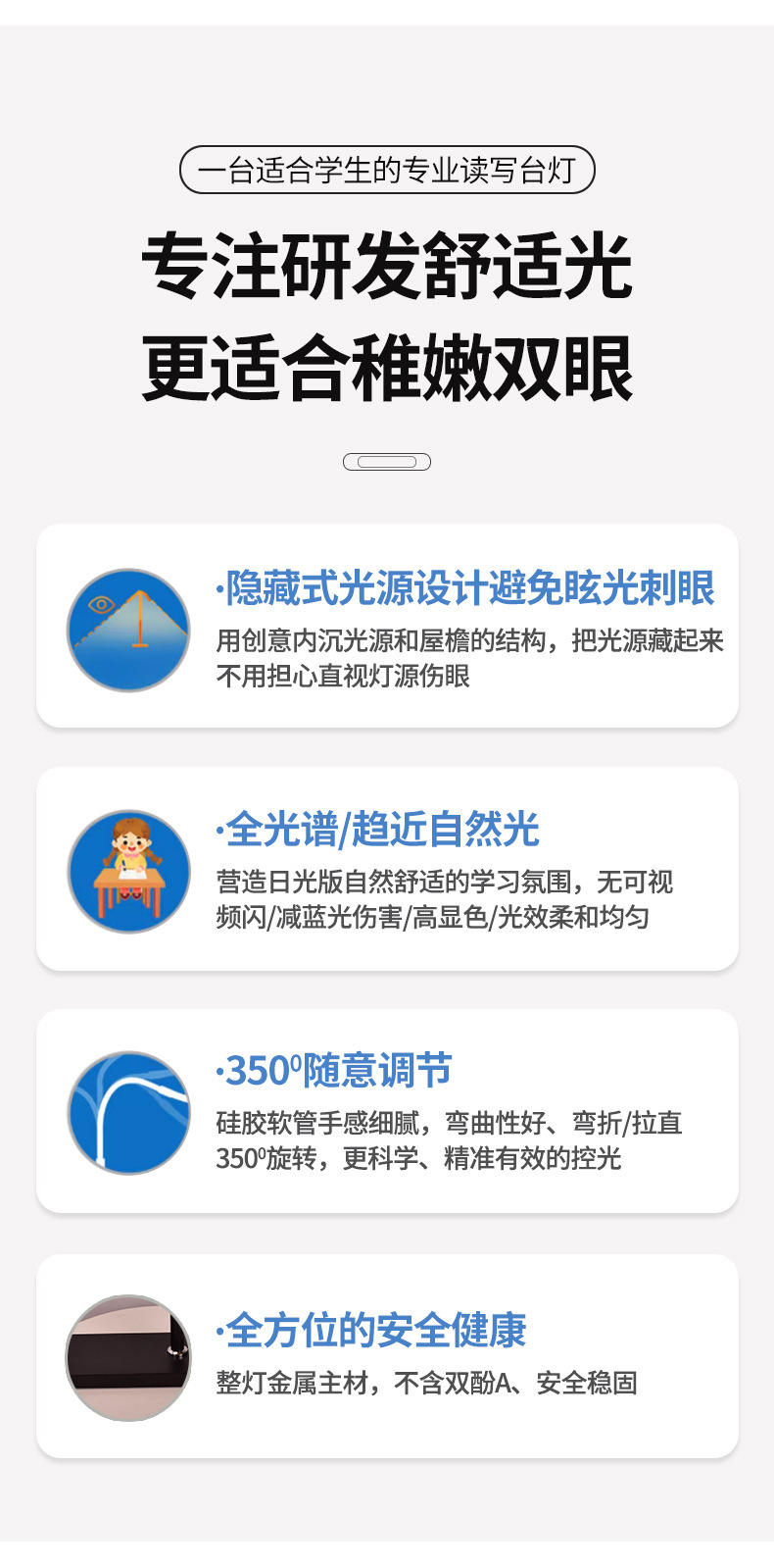 儿童书桌台灯学习专用灯学生阅读看书写字智能护眼LED宿舍床头灯