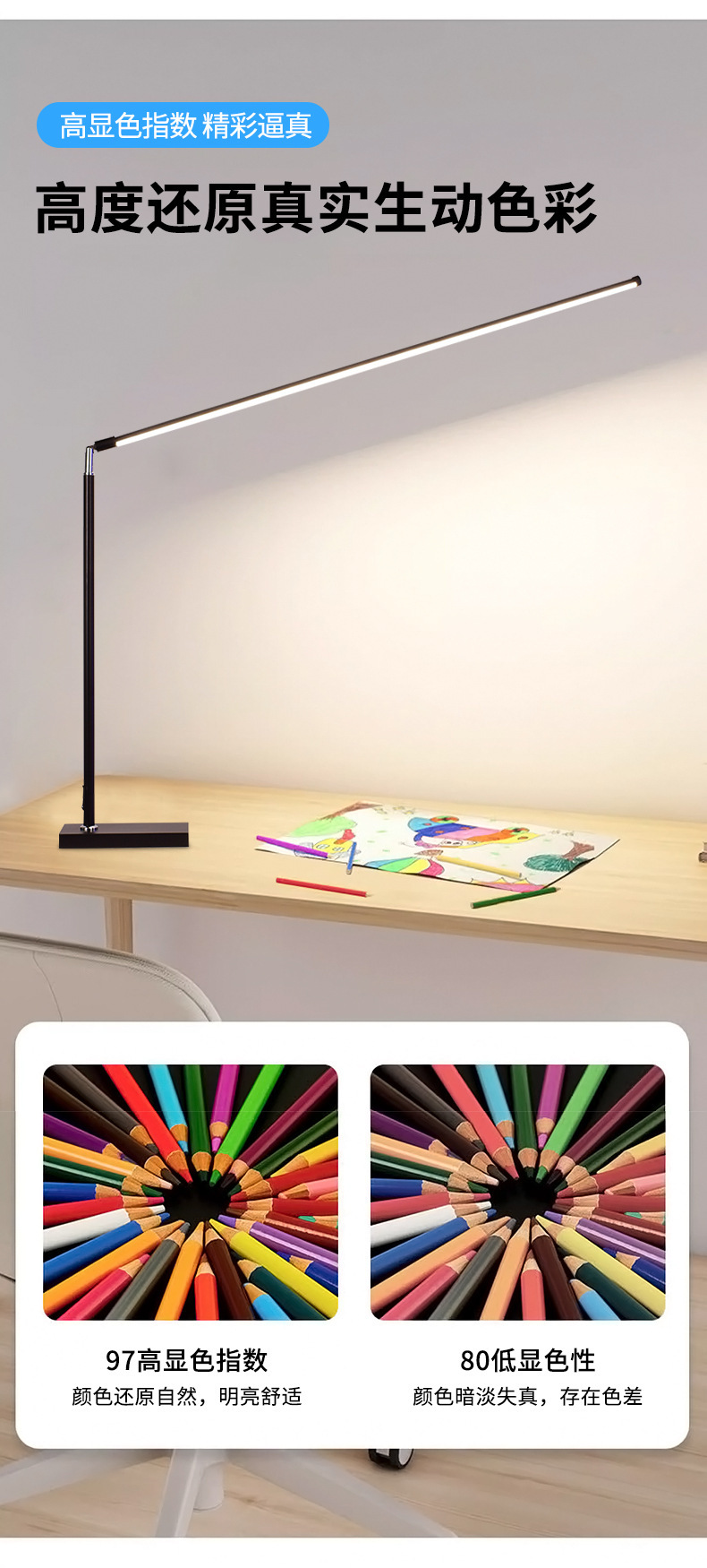 教室の明かりの全スペクトルの縦型の着地の大きい街灯の学生は専用の子供を学んで作業の目の電気スタンドを読みます。