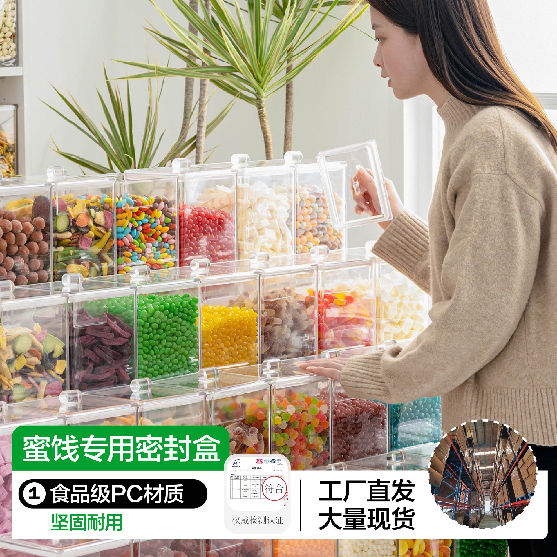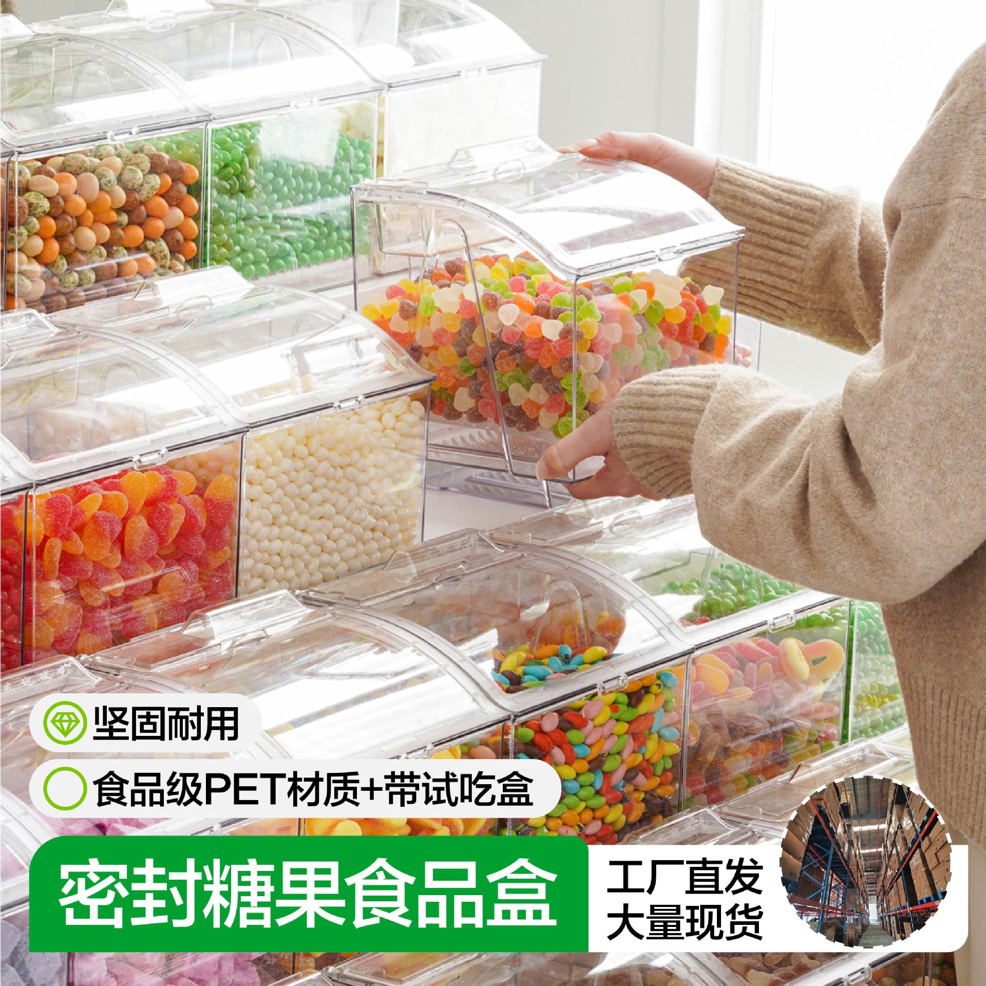 食品スーパーマーケットのプラスチック製食品容器、アクセサリー、キャンディー、スナック、ドライフルーツ、ギフトボックス、スプーン、クリップ、展示会推奨