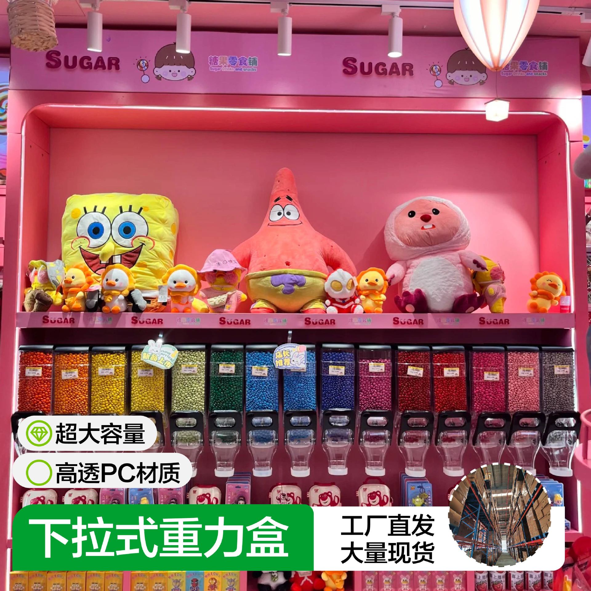 商超壁掛け式プルダウンキャンディー重力箱透明厚手プラスチック食品箱高級感ネット赤虹壁