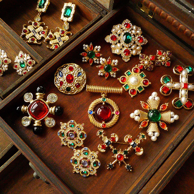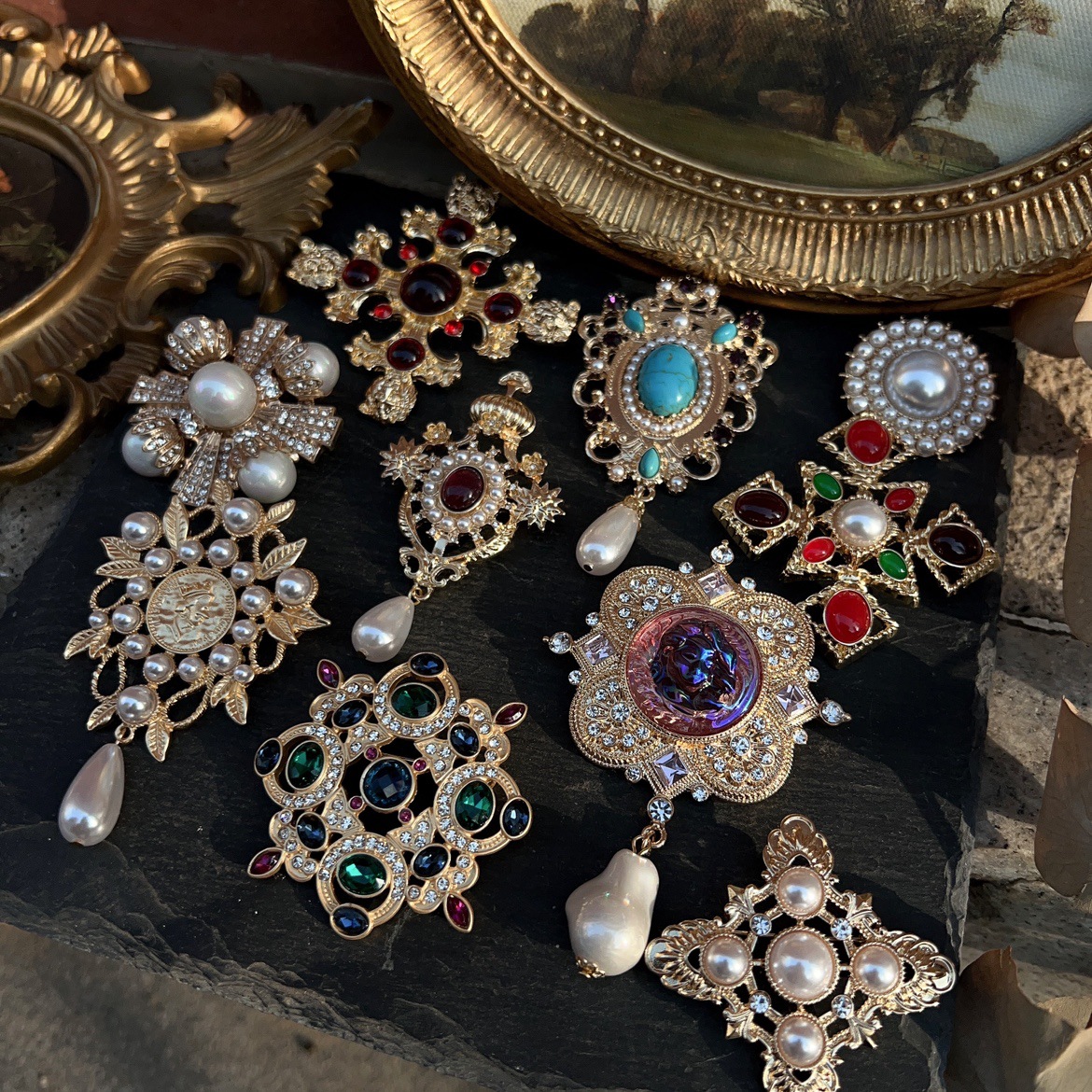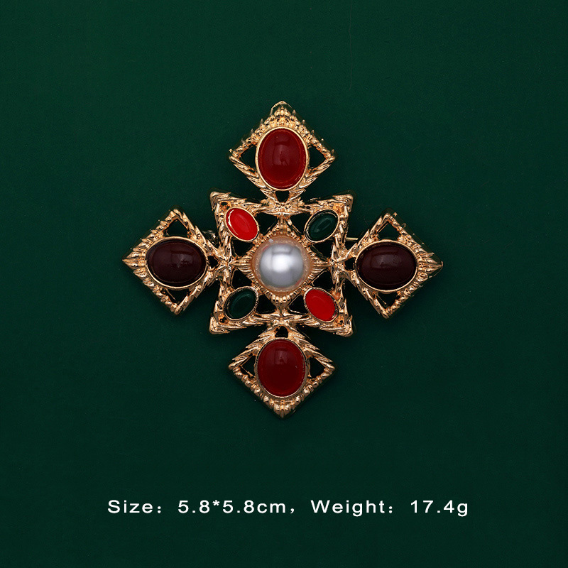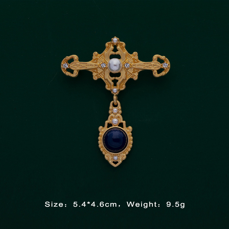 复古十字珍珠水晶巴洛克风格胸针徽章复古宫廷别针配饰现货批发