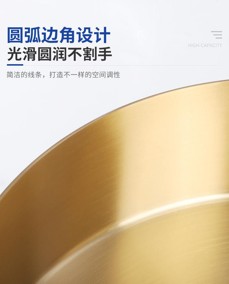 卸売り金色円形ステンレス台上盆軽贅沢ホテルトイレ洗面器新型北欧洗面器