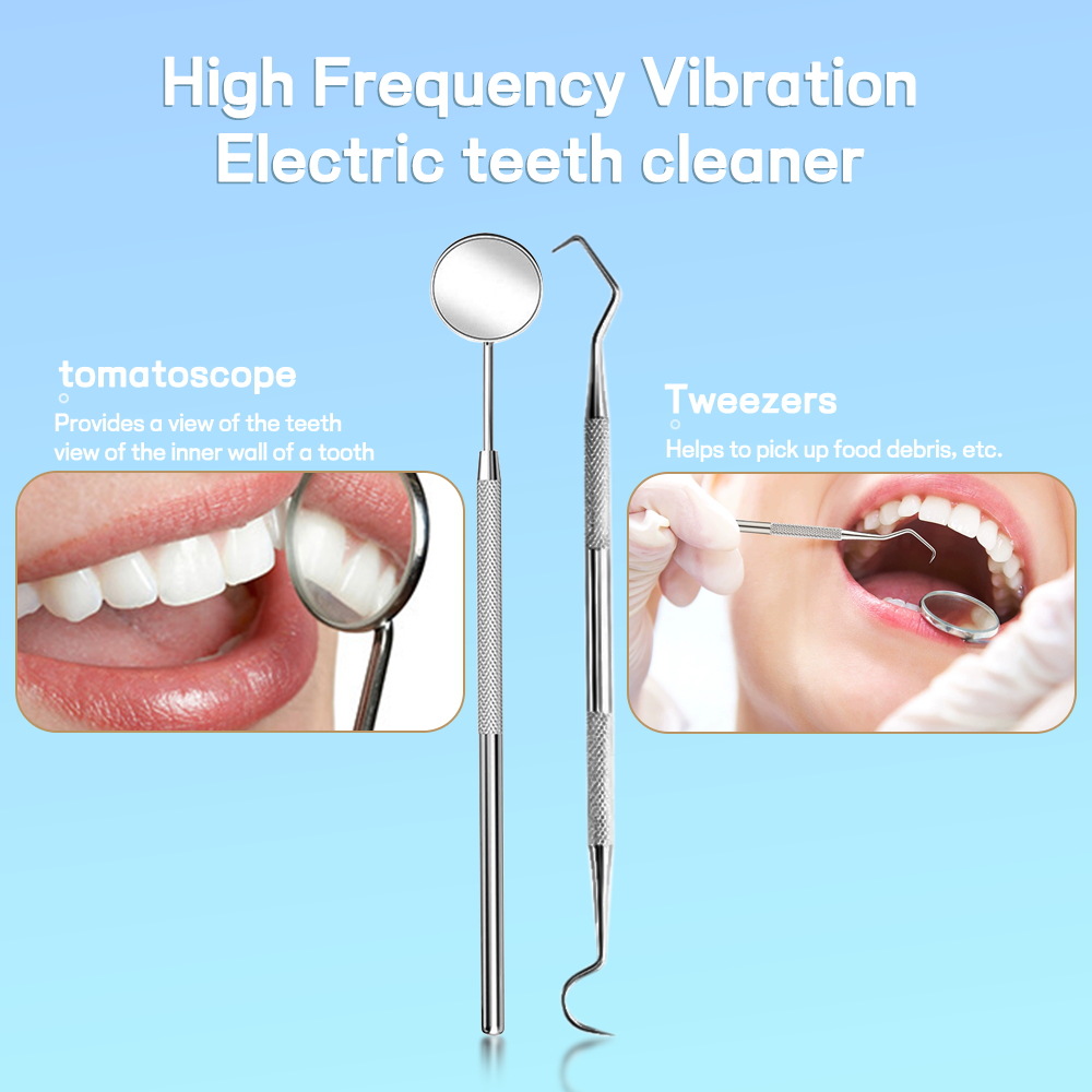 包装清单:主机*1,替换头*1,牙垢清洁工具*1,牙医镜*1,充电线*1,英文说明书*1,英文彩盒*1