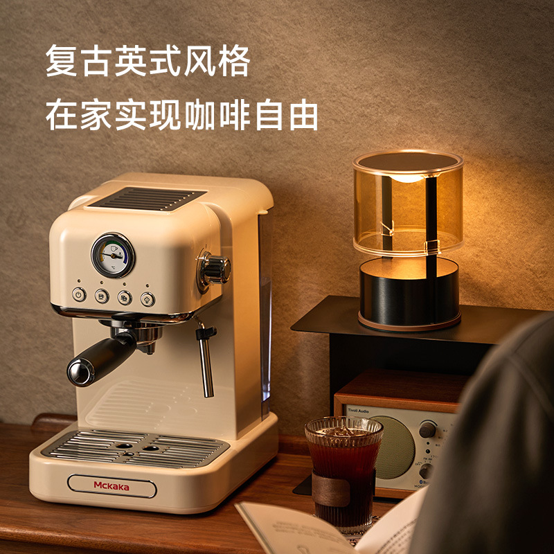 マッカカ デュアルエキス イタリアンスタイル 半自動 家庭用コーヒーメーカー ミルクフォームメーカー 自家製コーヒー粉 温度調節 ミルクフォーム レトロ