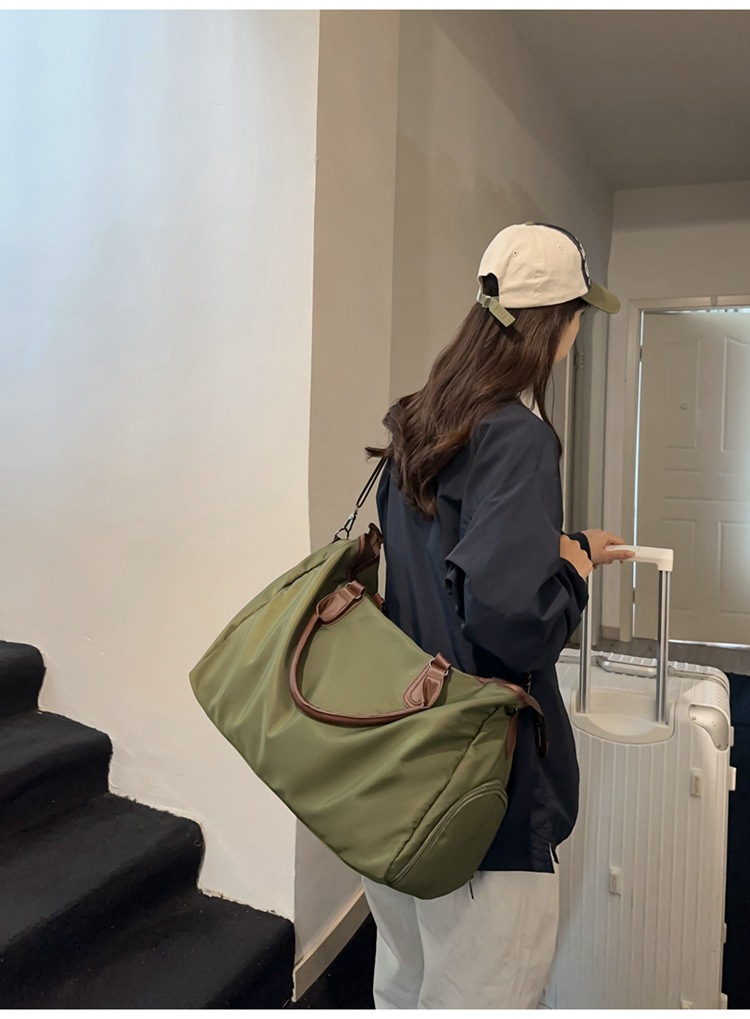 女性の短距離外出はシンプルで清新な腋の下で旅行バッグを持って靴倉庫のフィットネスヨガバッグを持っている