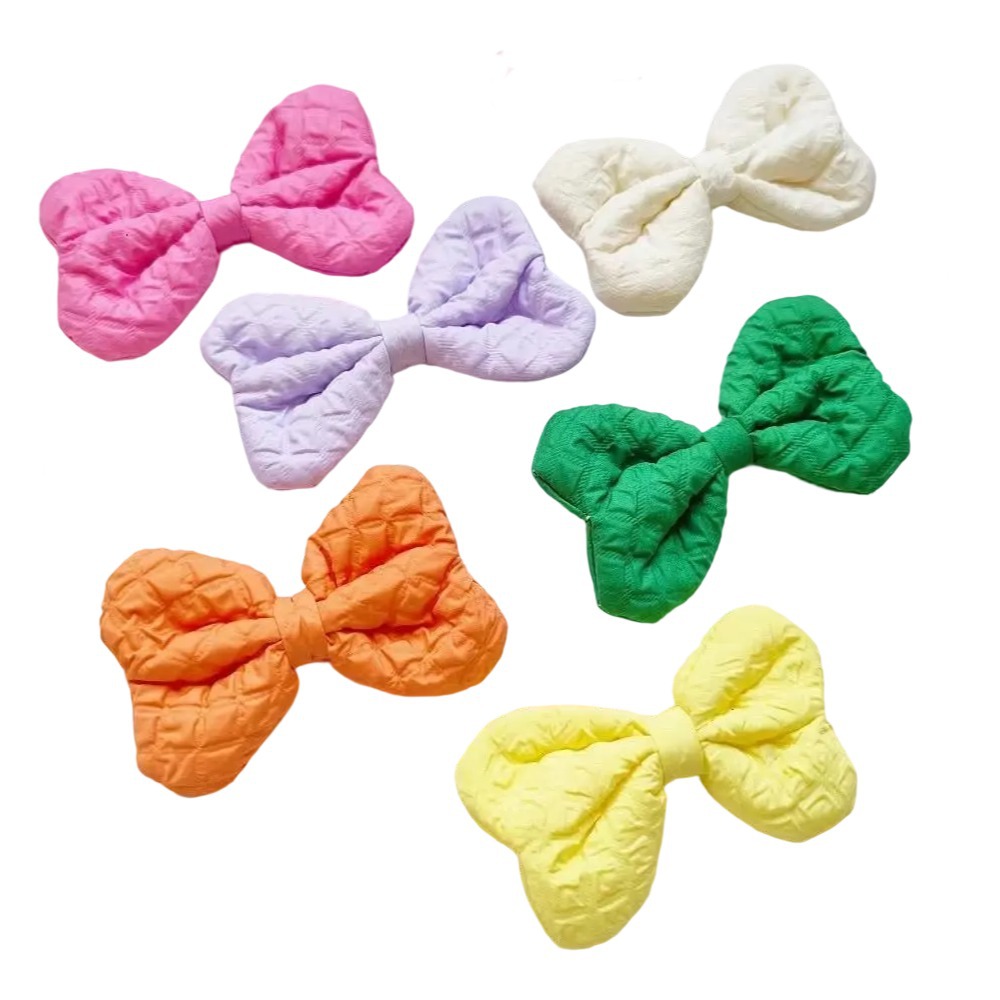 韓国の新しいキャンディーカラーの綿入り生地のリボン子供用ヘアピンヘアアクセサリープリーツ DIY ジュエリーアクセサリー