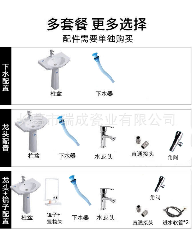 広東省メーカー直販 柱型洗面器 吊り下げ式洗面器 セラミック柱型洗面器 洗面台 分離型柱型洗面器