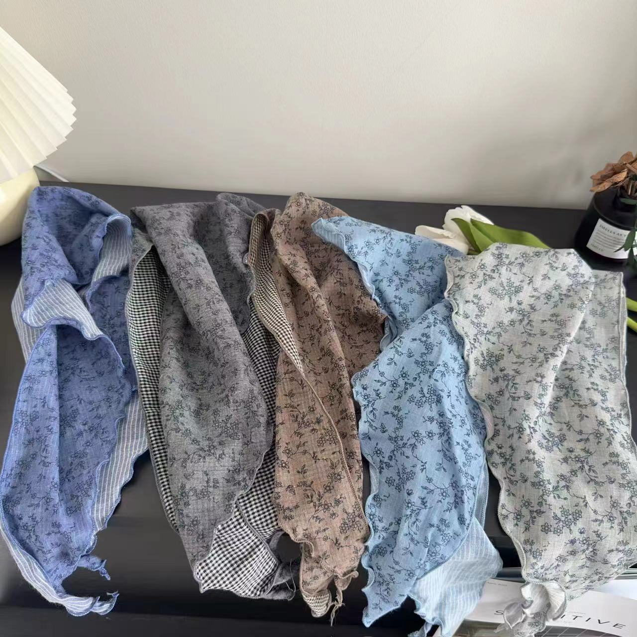 輸出日韓単 ~ 春夏新作首保護両面三角タオル吸汗通気性文芸小襟タオル髪帯頭巾
