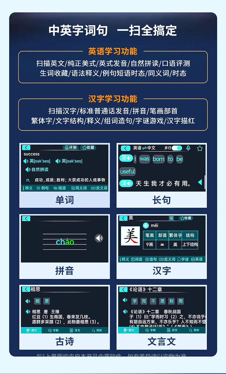 点读笔英语多功能通用小学初中高中学生翻译笔词典笔扫描搜题便携