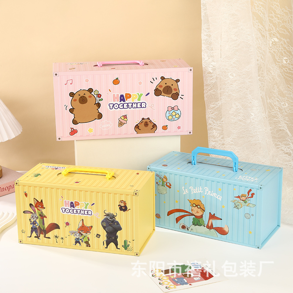 六一礼品盒卡通新年礼盒儿童宝宝周岁生日礼品空盒大容量手提礼盒