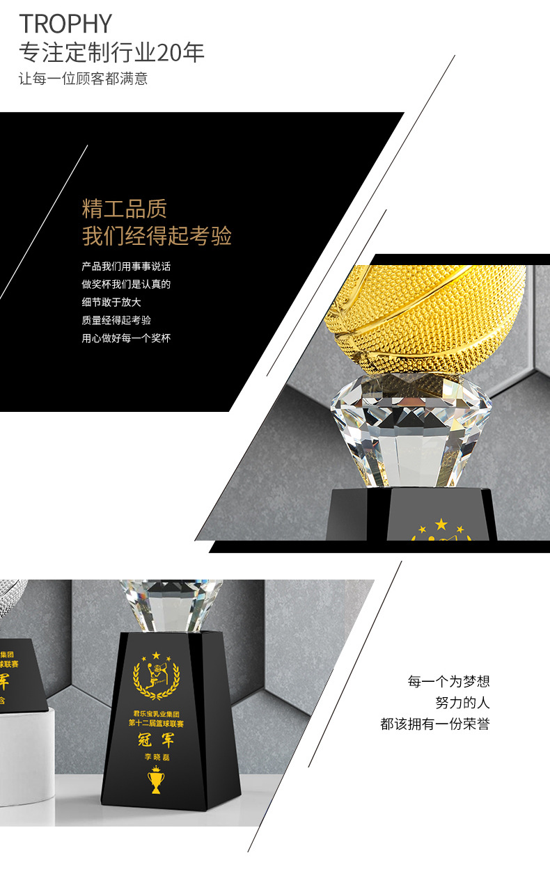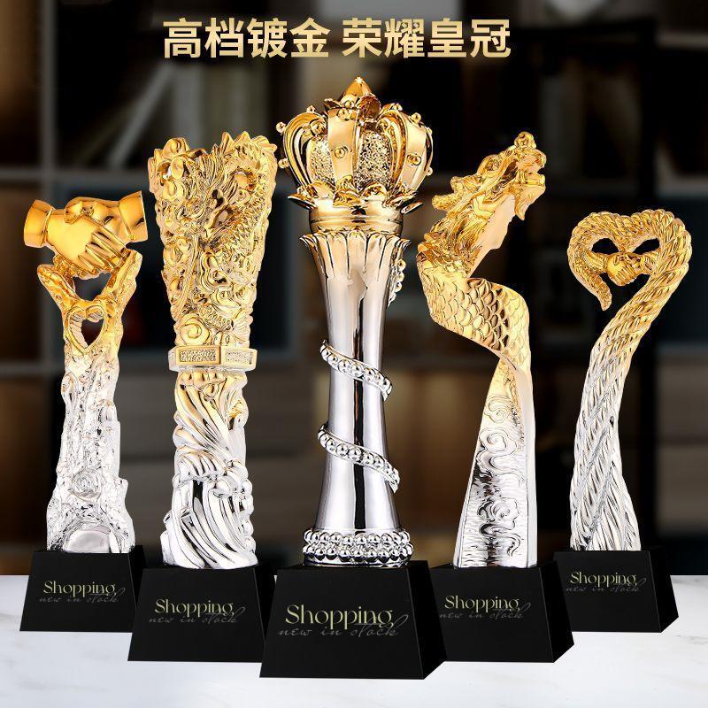 クラウン樹脂トロフィー優秀社員試合優勝創意メダルオーダー記念品水晶金メッキトロフィー