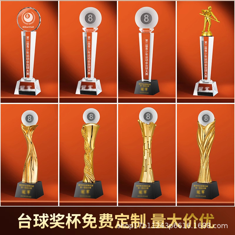 创意黑八台球水晶奖杯高档树脂斯诺克奖牌桌球俱乐部比赛奖品刻字