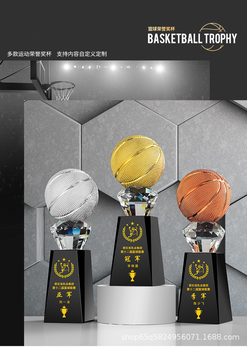 子供バスケットボールサッカーバドミントン卓球水晶トロフィー学校運動会スポーツ試合トロフィーメダル