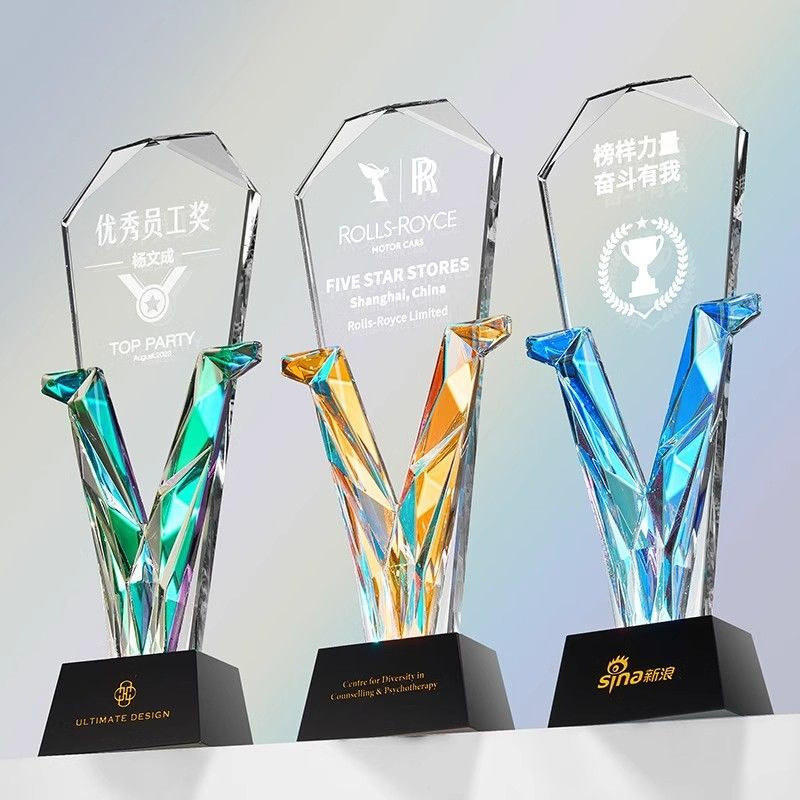 高級カラフルクリスタルトロフィー 年次総会 優秀社員賞 会社周年記念セール チャンピオン記念品