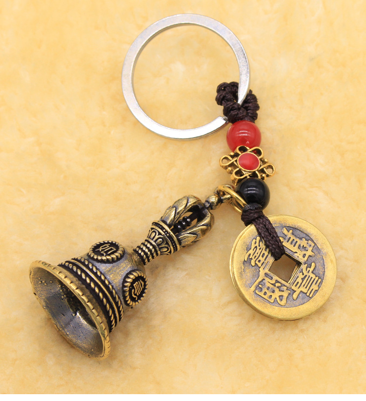 复古六字真言铃铛钥匙扣个性创意钥匙链心经吊坠饰品汽车钥匙挂件