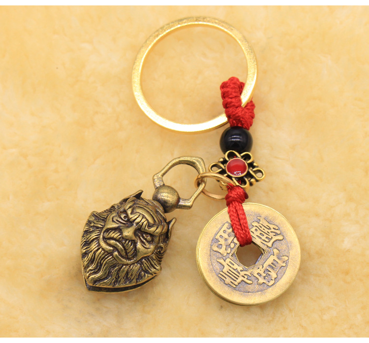 キーチェーンのアクセサリーは伝統的な真銅の五帝のお金の真鍮の鈴の蛇口の風鈴のペンダントの手作りの復古の三獅子を飾ります。