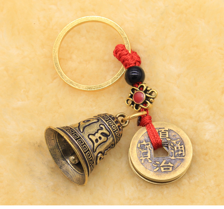 真銅五帝銭キーホルダー活動そろばんペンダント車内ペンダント装飾如意金色鍵ペンダント露店