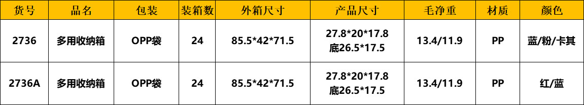仕様 貨物番号2736多用途収納ボックス-24個/箱,貨物番号2736a多目的収納ボックス-24個/箱