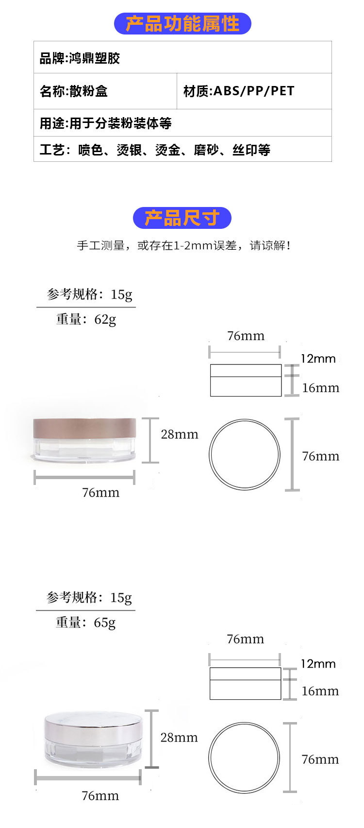 散粉箱、散粉箱には弾力網、散粉箱15g、散粉箱には包装材がついている