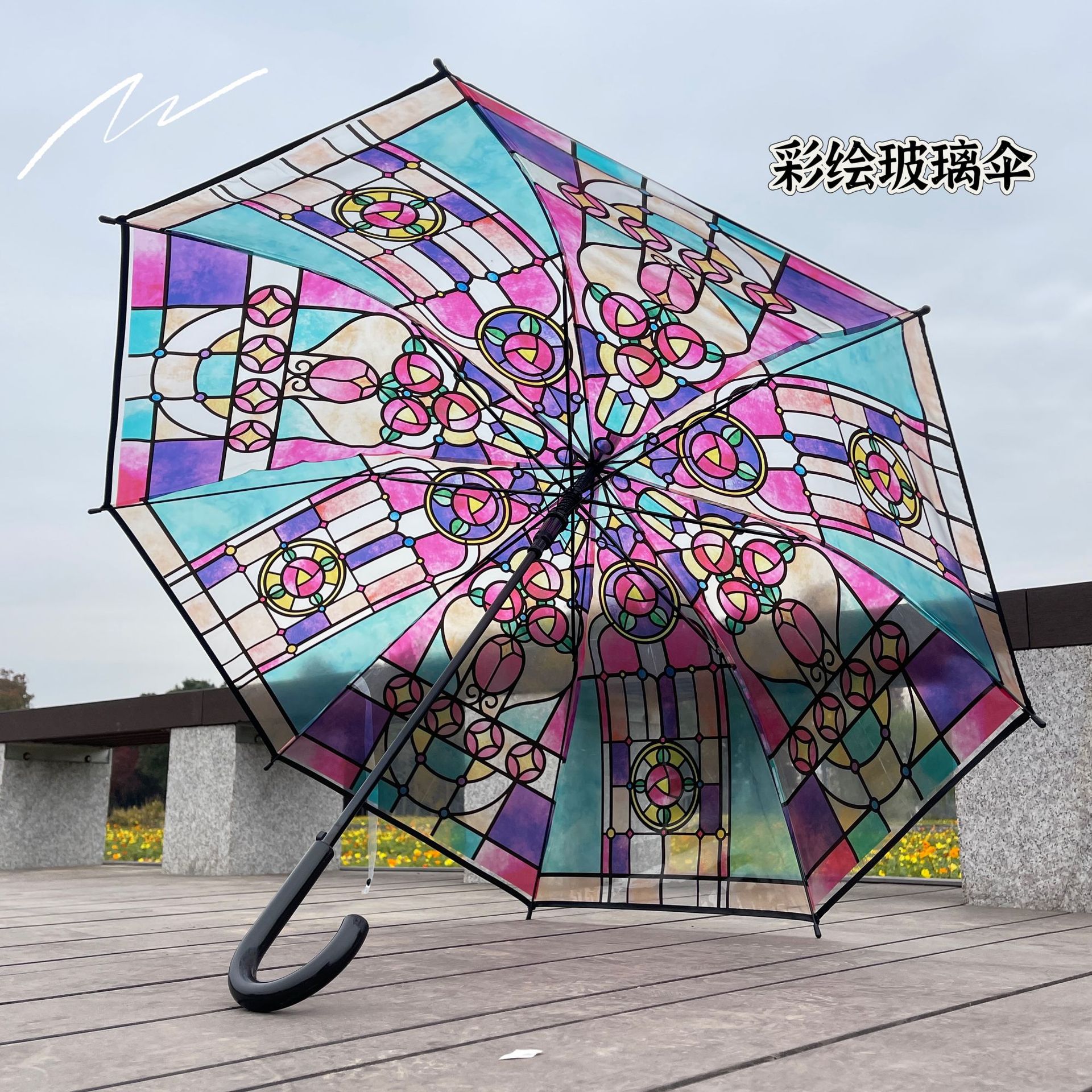 英倫風熱帯雨林アーチ透明傘彩色ガラス透明傘長柄自動大ロマンチック晴雨