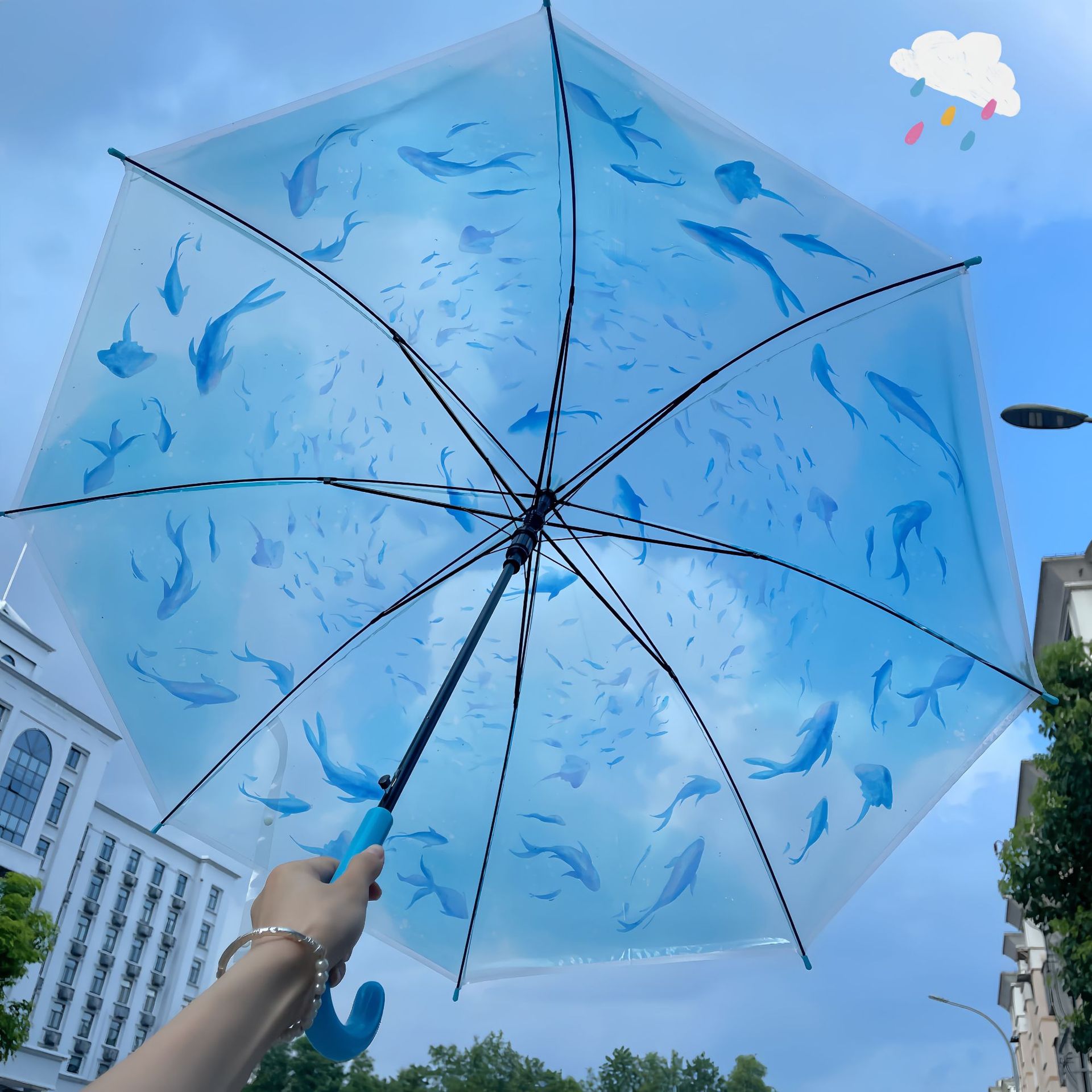 ファッション水族館連名透明傘頑丈耐風軽量高颜値小型携帯折り畳みクラゲ傘女