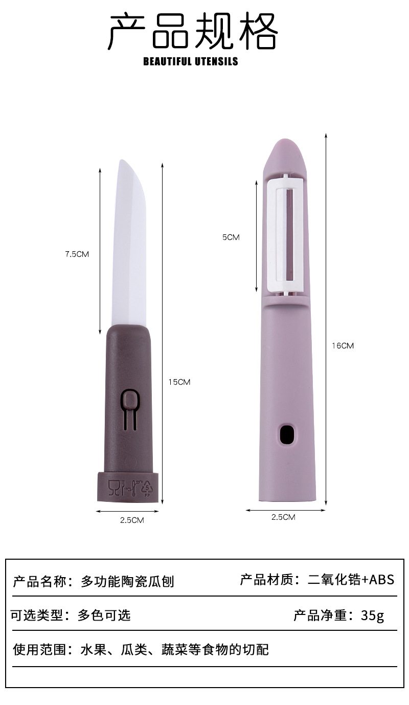 ツーインワンフルーツピーラー、多機能双頭セラミックフルーツナイフ、野菜の高価値、持ち運びが簡単