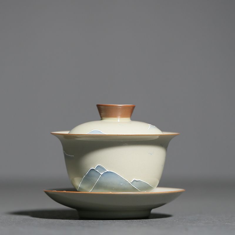 創意的な手描きの遠山三才蓋碗家庭用の工夫茶器陶磁器はお茶を入れます。