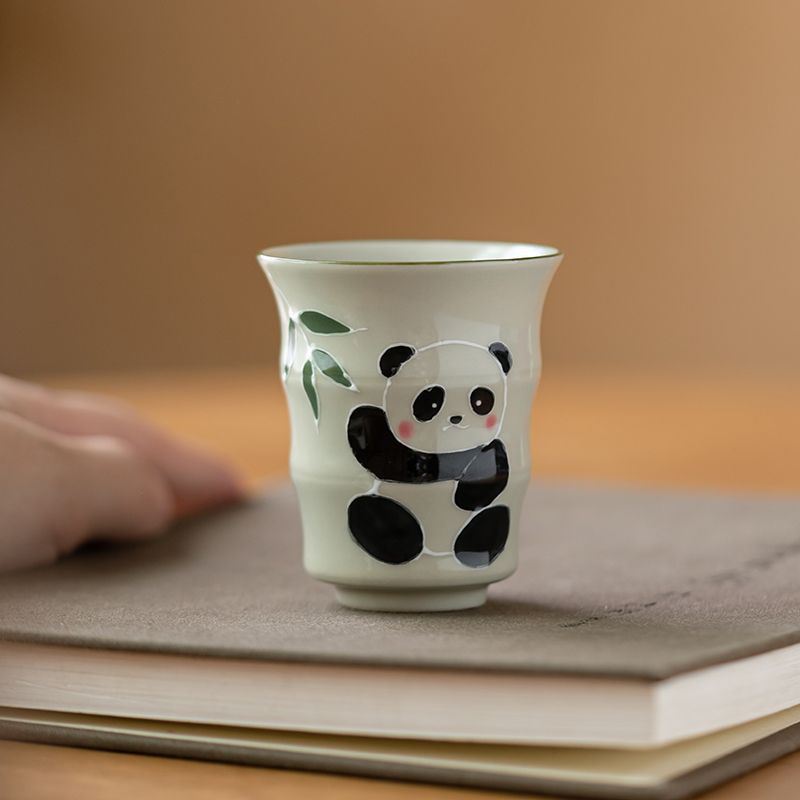 草の木の灰色の手描きのパンダの主人の杯の竹節の杯の単女の杯の工夫の杯の陶磁器の品茗杯の男の対の杯