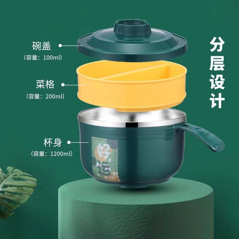 カップラーメンボウル蓋付きins高颜値ステンレス学生寮サラリーマン食堂ご飯インスタントラーメンボウルカップ