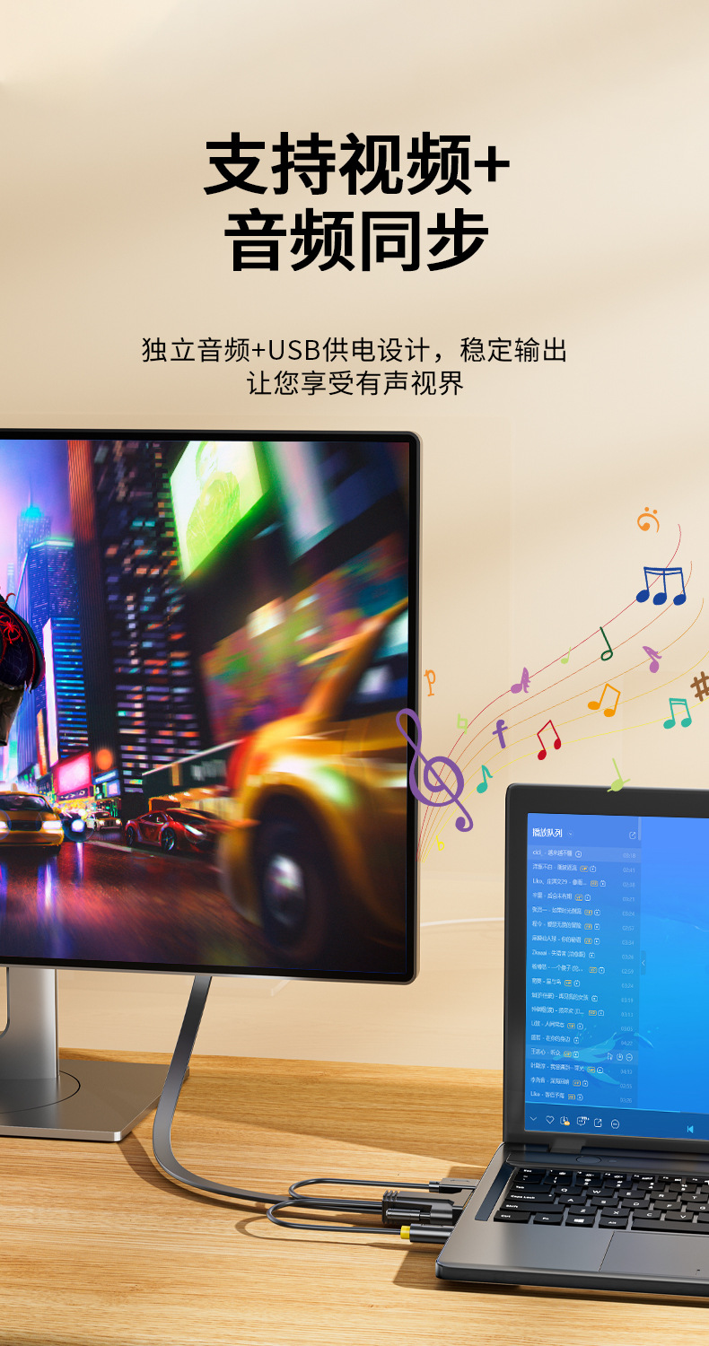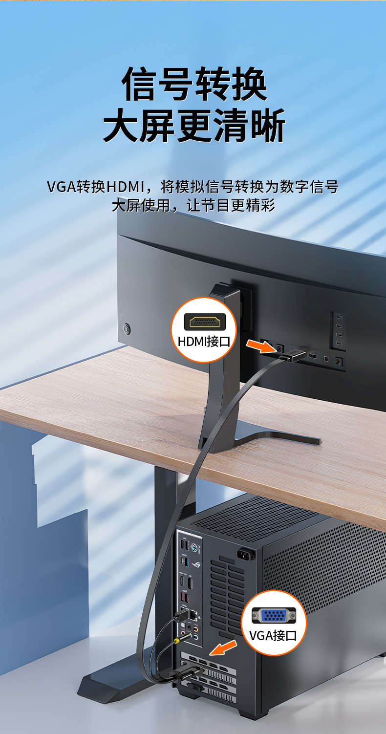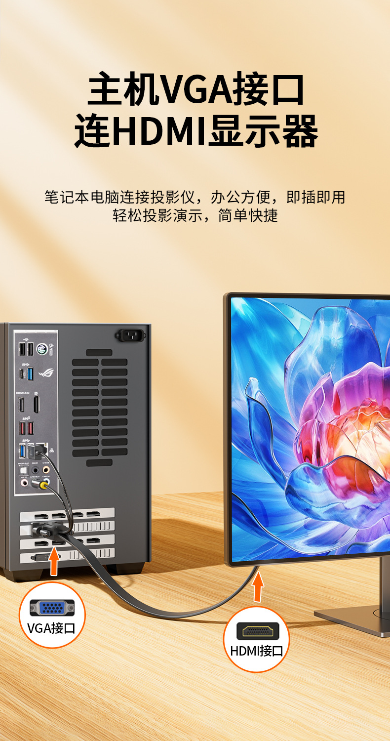 VGA-HDMI変換ケーブルオーディオ付き電源コンピュータ本体モニタビデオ1080p hd変換ケーブル