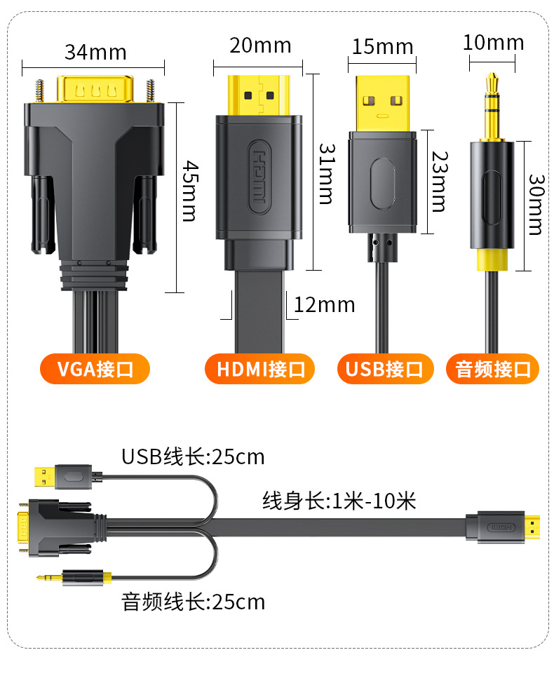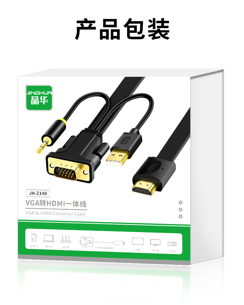 カラー Vga-hdmi一体線標準版 (オーディオ付き),Vga-hdmi一体線金版 (オーディオ付き)