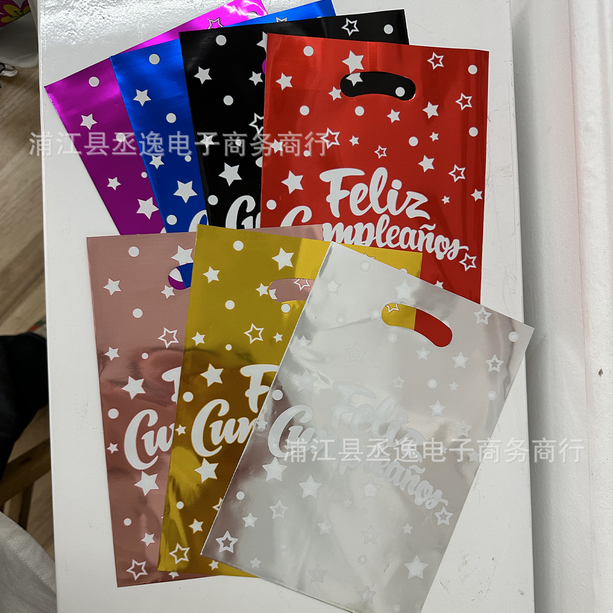 アマゾン新作 スペイン語「ハッピーバースデー」ミラー風アルミフィルム包装ギフトバッグ キャンディバッグ お返しギフトバッグ