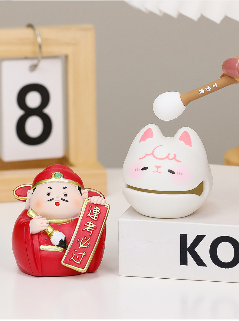 国潮招財猫公仔手作りアニメ子猫のデスクトップに祝日プレゼントを飾っています。