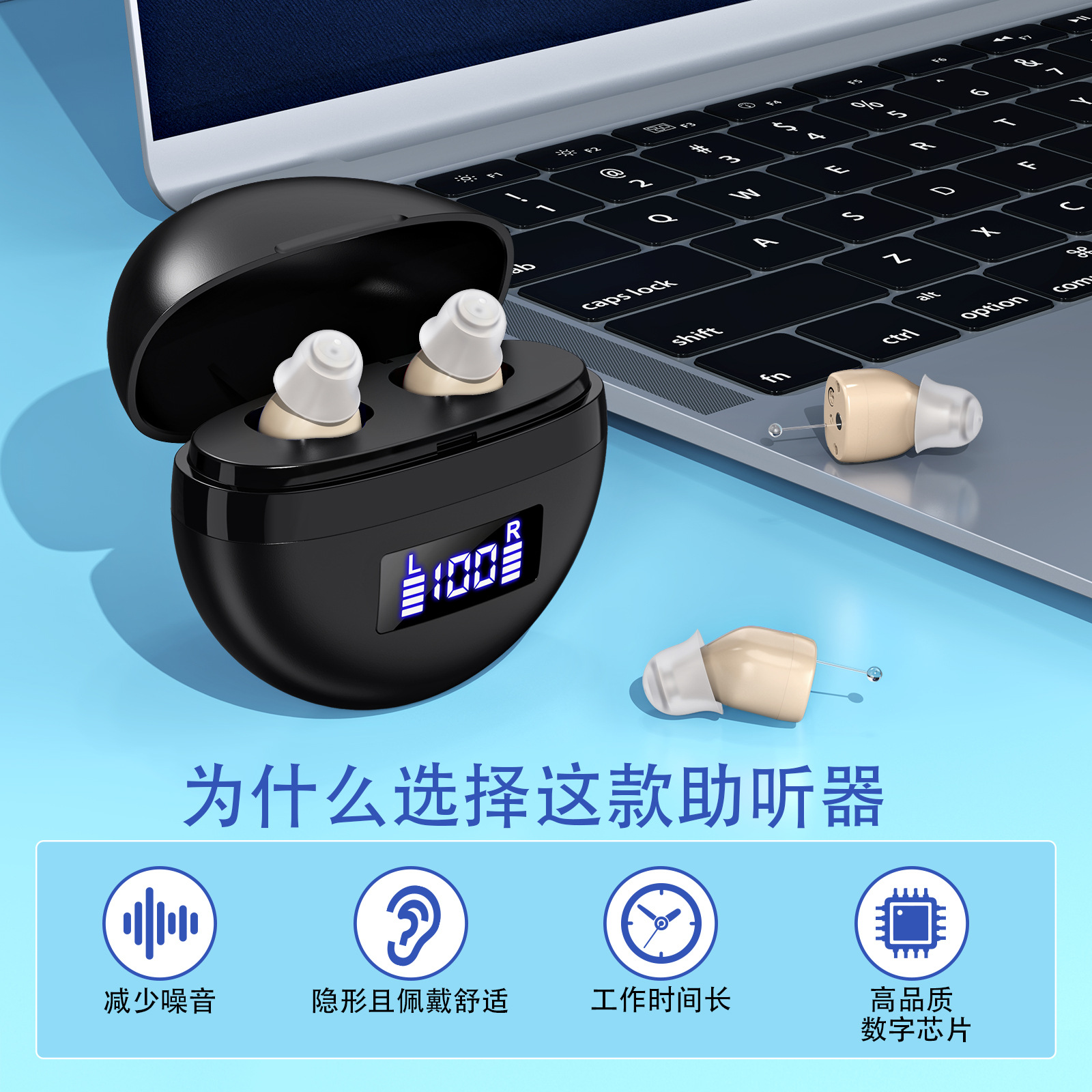 高齢者デジタル表示補聴器は、騒音低減機能付きの磁気吸着充電可能な音声アンプを装着しています。