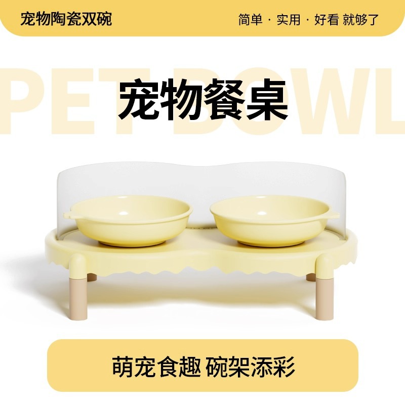 陶瓷猫碗猫咪食盆狗狗喝水碗高脚护颈双碗防外溅狗碗狗盆饮水碗