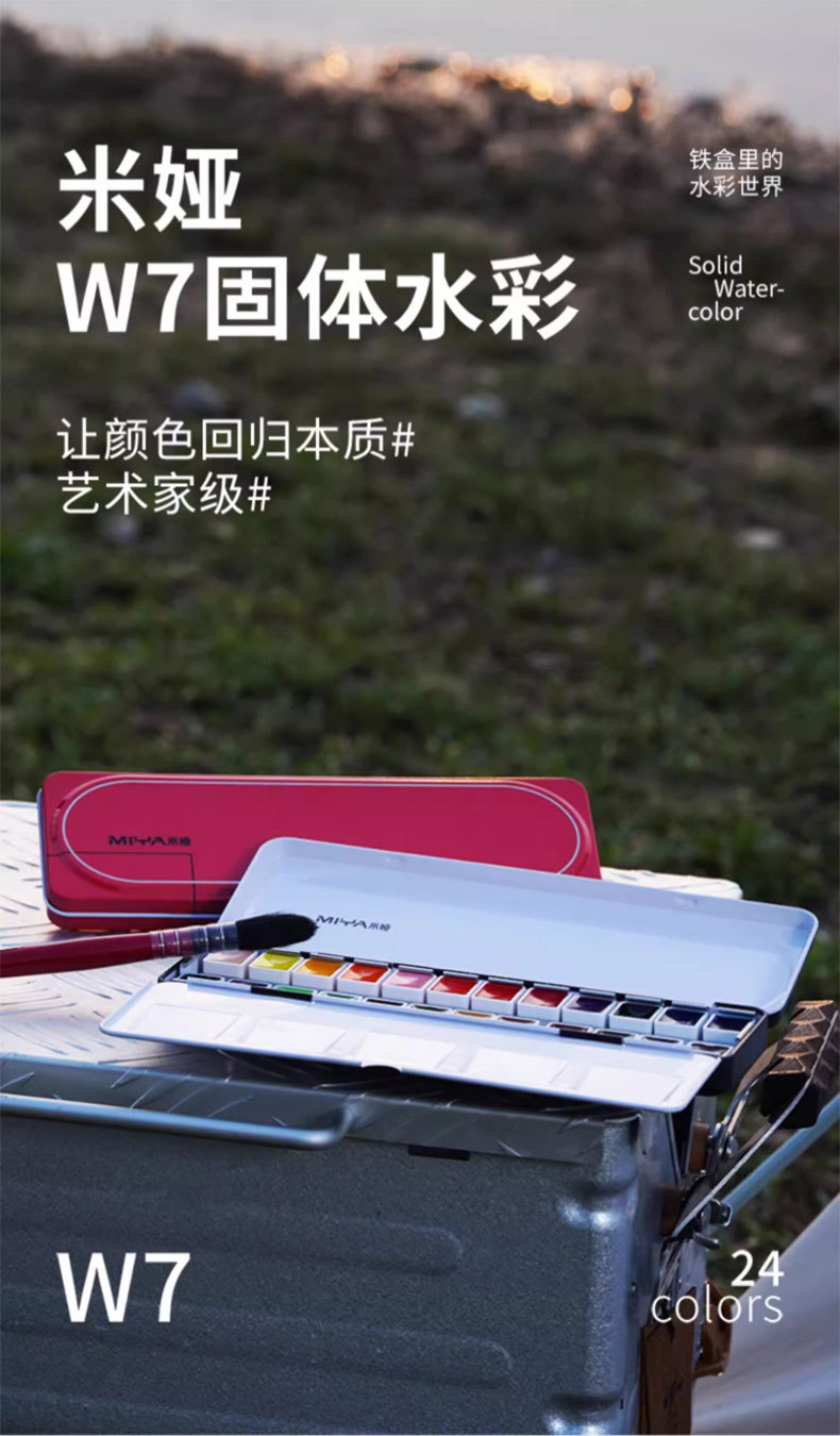 ミヤ固体水彩絵の具レッドボックスw7固体水彩24色セット美术生専用アーティストクラス