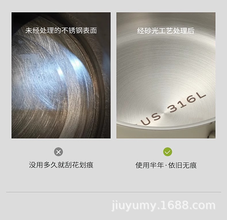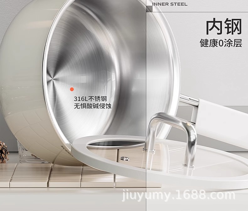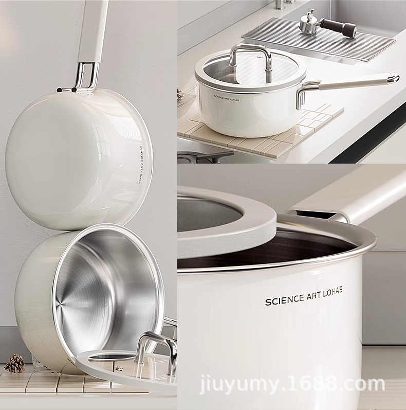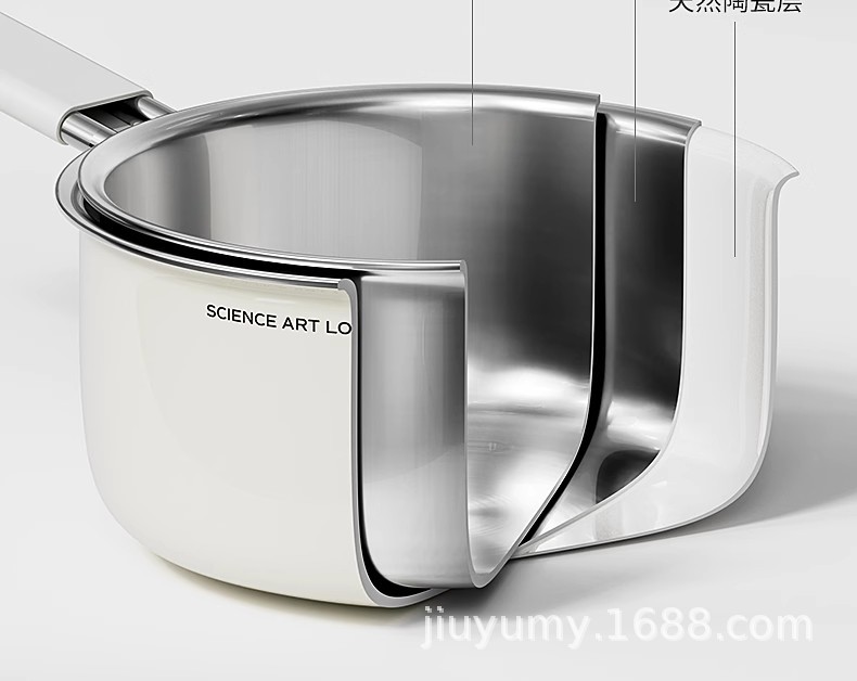 316ステンレススチールコーティングなしミルクポット非粘着ポット食品グレード外セラミックミルクポット一体成形厚いカップラーメン鍋