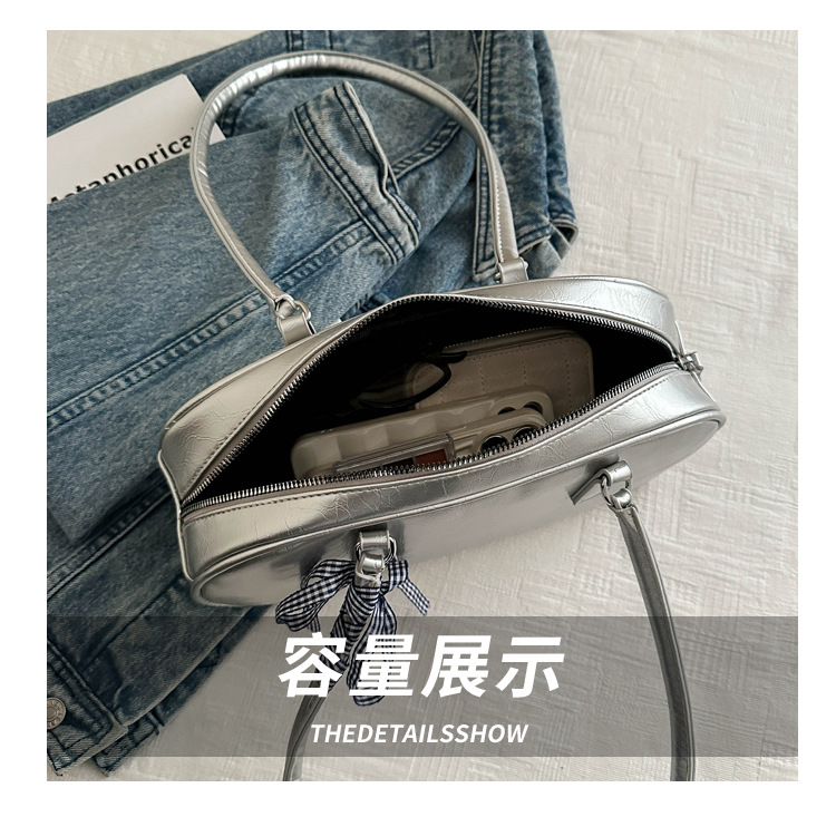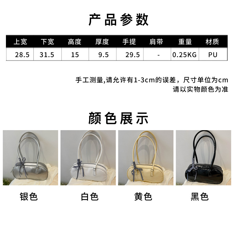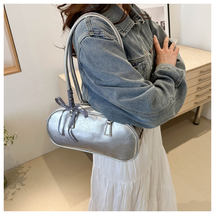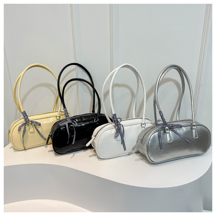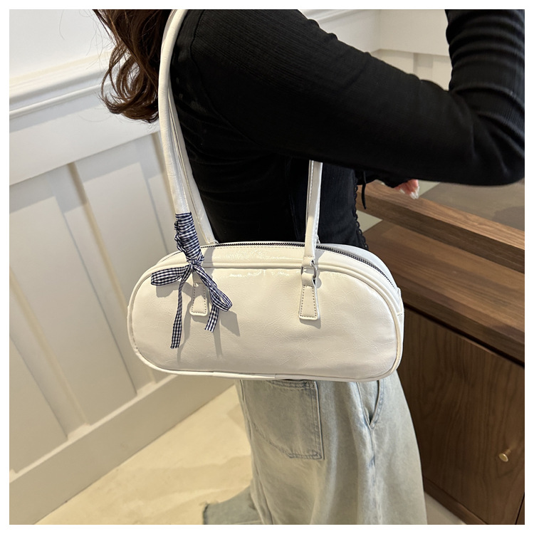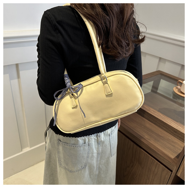 ネット赤ファッションシンプルな純色リボンハンドバッグ2024春の新型百合insシングル肩脇下バッグ韓国版