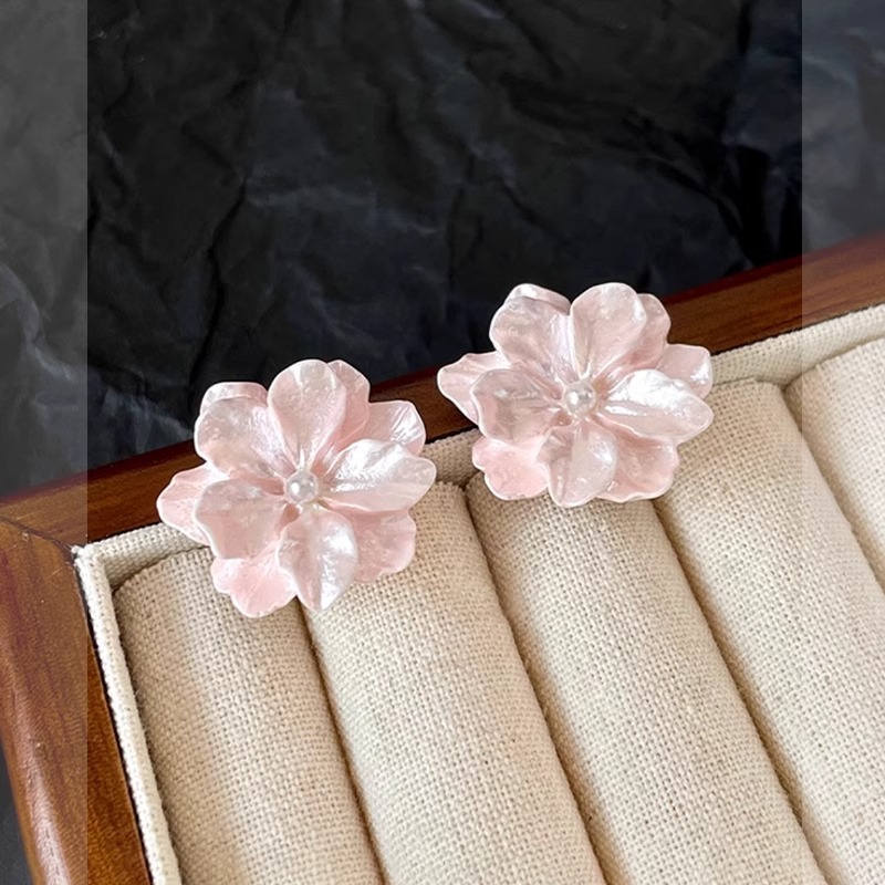 ピンクのツバキの花のイヤリングの女性の軽豪華な高級な甘い耳飾りの気質のファッションの優しさの日常のかわいい新型のピアス
