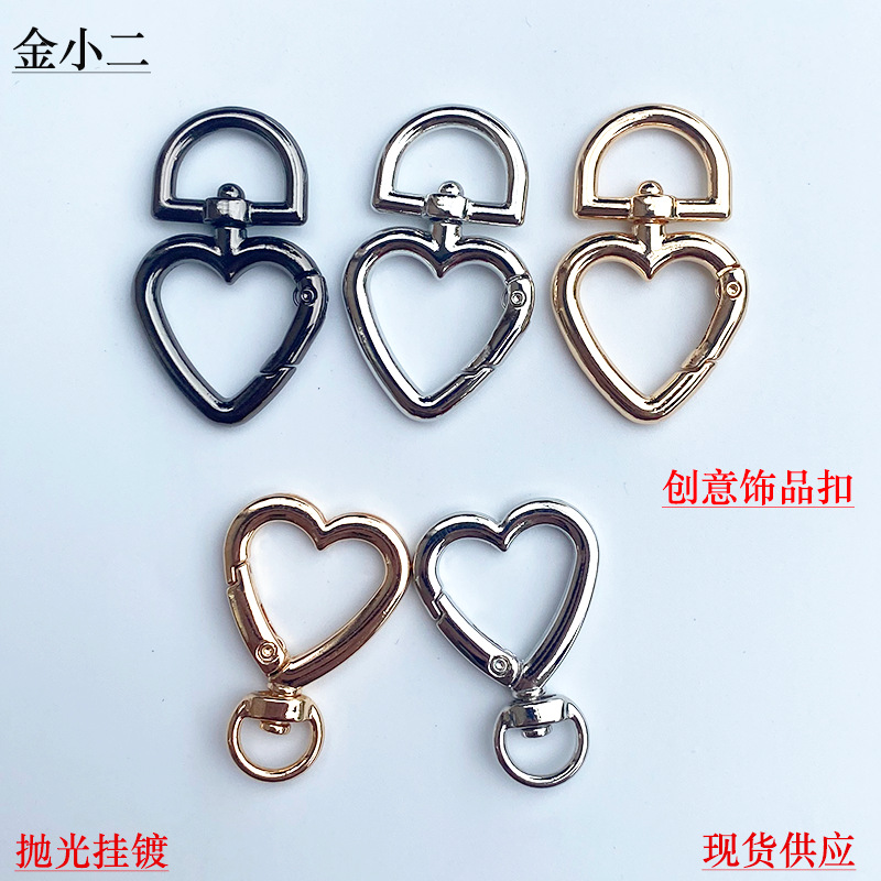 亜鉛合金回転ピーチハートスプリングバックル愛オープンリングぶら下げメッキ 8 文字キーホルダー衣類バッグジュエリーバックル