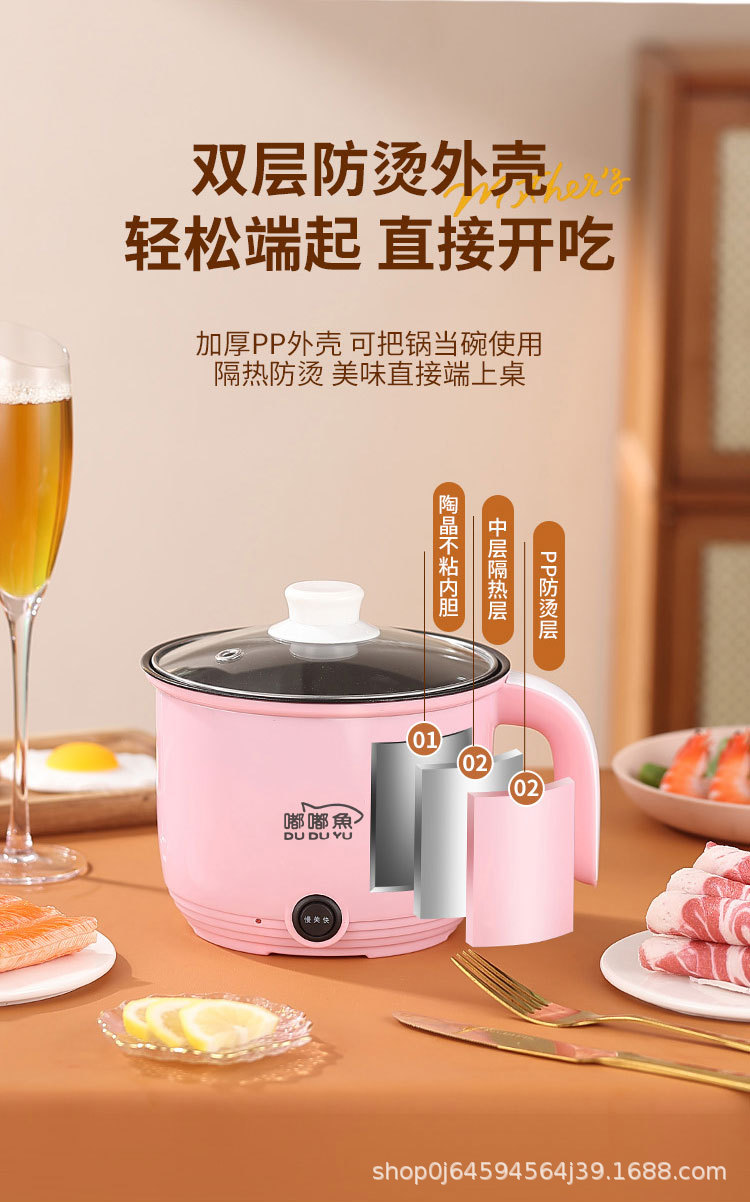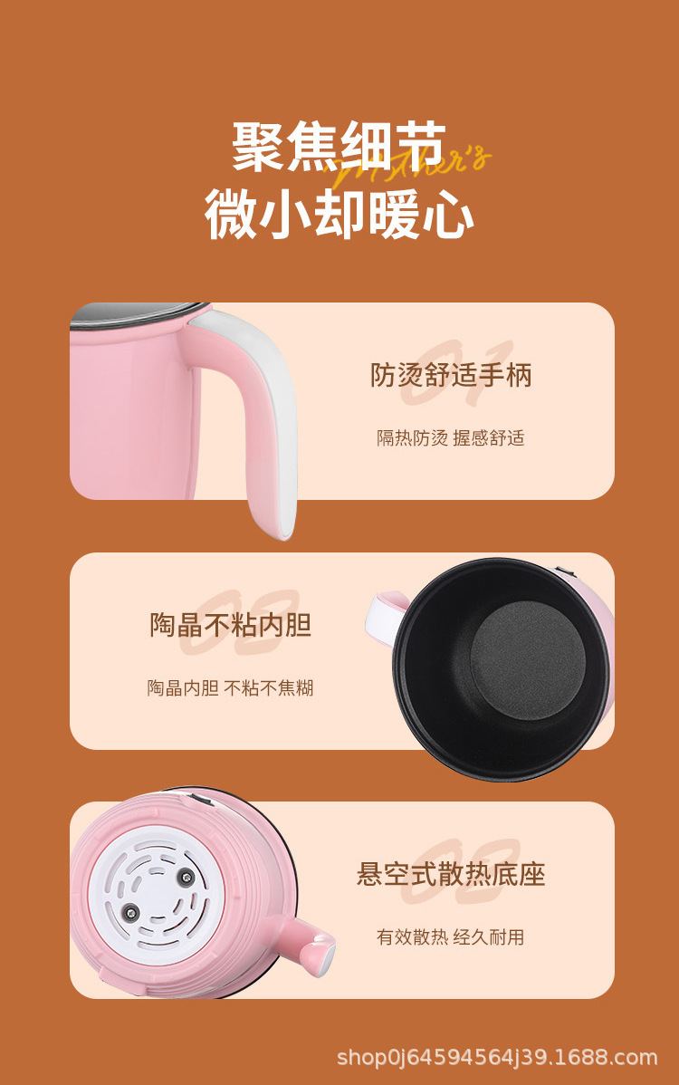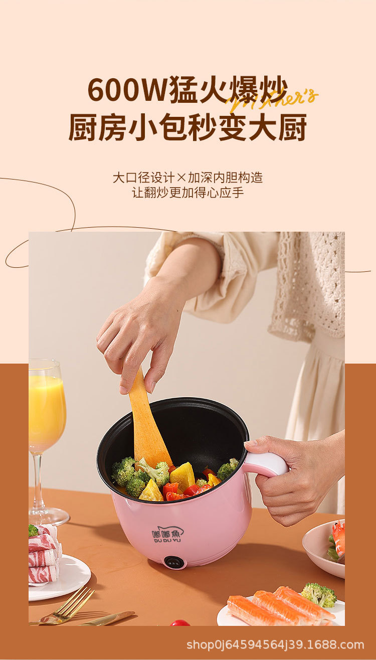 小型電気煮鍋一体多機能家庭用小電気鍋学生寮煮面電気鍋ミニカップラーメン鍋