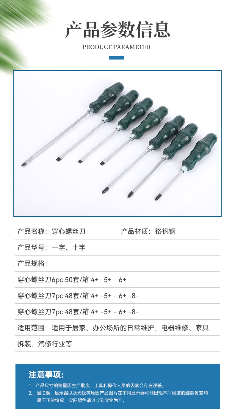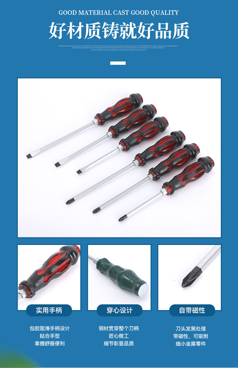 可敲击穿心螺丝刀精品套装一字十字强磁高硬度通心加长刀杆螺丝刀