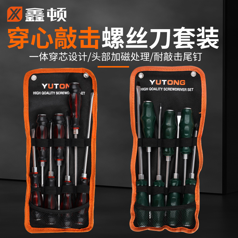 鑫顿可敲击穿心螺丝刀套装一字十字超硬梅花平口起子改锥带强磁性