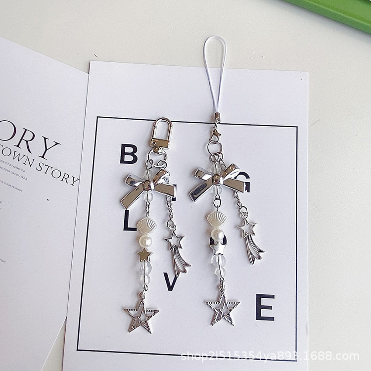 高级银少女蝴蝶结手机壳吊坠五角星ccd相机挂件链包包钥匙扣挂绳