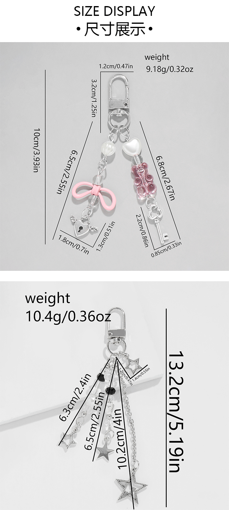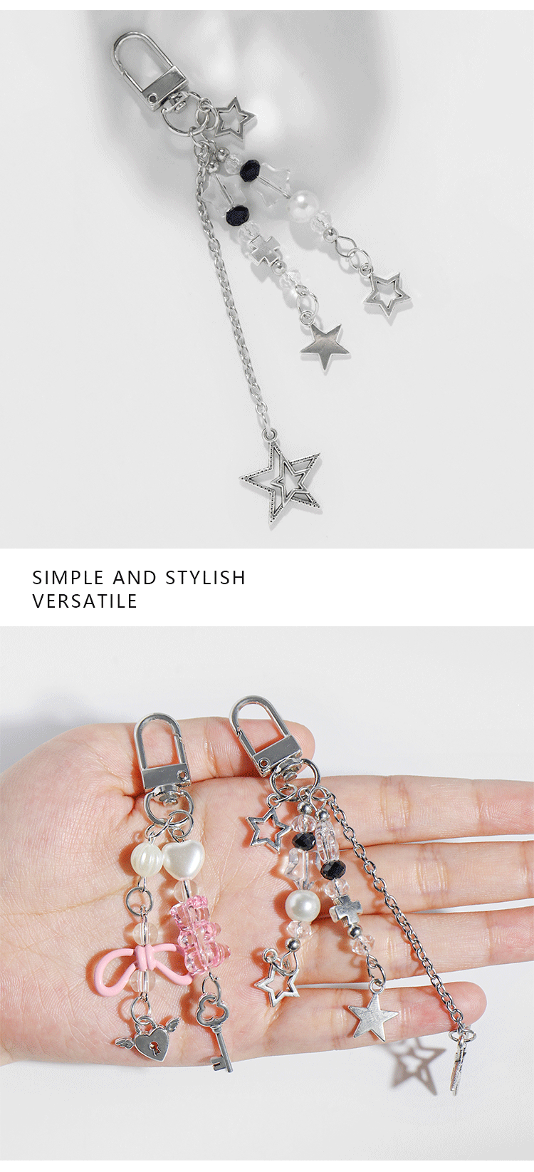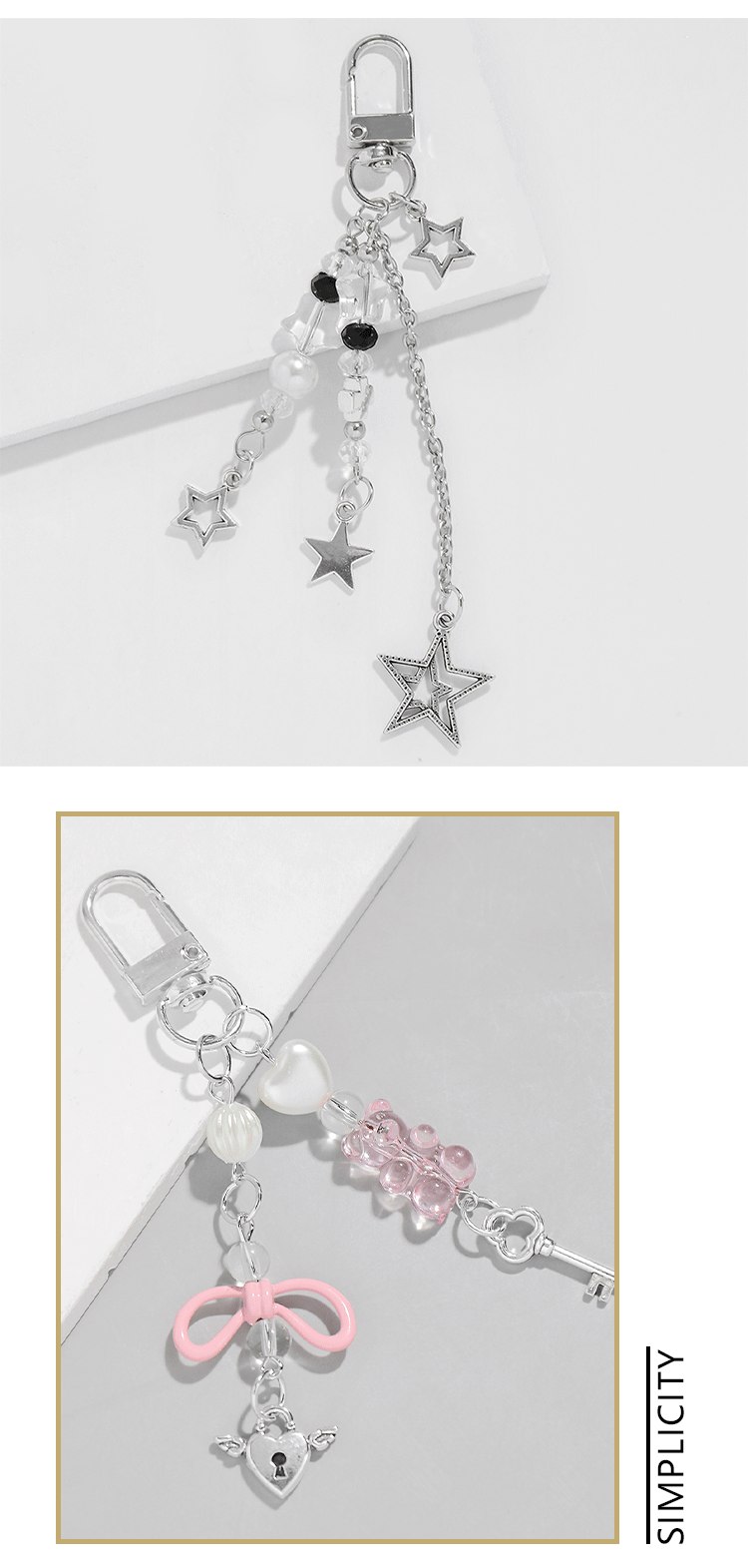 甜酷个性时尚百搭CCB蝴蝶结树脂珠镂空爱心星星DIY钥匙扣包包挂件