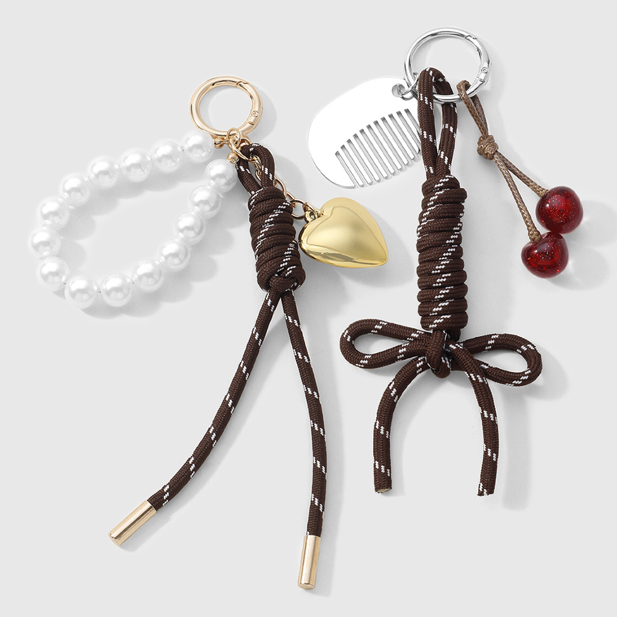 新款复古时尚精致仿珍珠串珠爱心梳子樱桃编织蝴蝶结钥匙扣包挂件